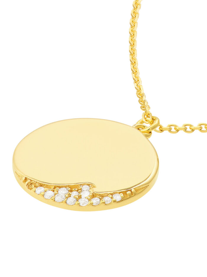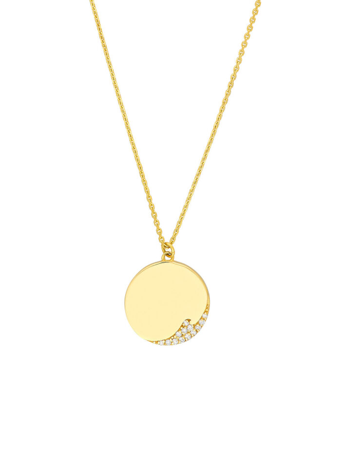 Make a statement with this stunning Diamond Wave Medallion Necklace. Crafted in shimmering 14K yellow gold, the pendant captures the beauty of a wave adorned with sparkling diamonds. The adjustable chain lets you customize the fit, making it perfect for layering or wearing solo. This necklace adds a touch of elegance and sophistication to any look.