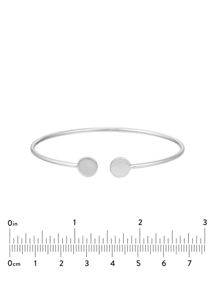 Elevate your wrist game with this stunning disc cuff bangle. Crafted from gleaming 14K white gold, this bangle features a sleek disc design that complements any style. Wear it solo for a minimalist look or stack it with other bangles for a personalized touch. This versatile piece is perfect for adding a touch of elegance to your everyday outfit.