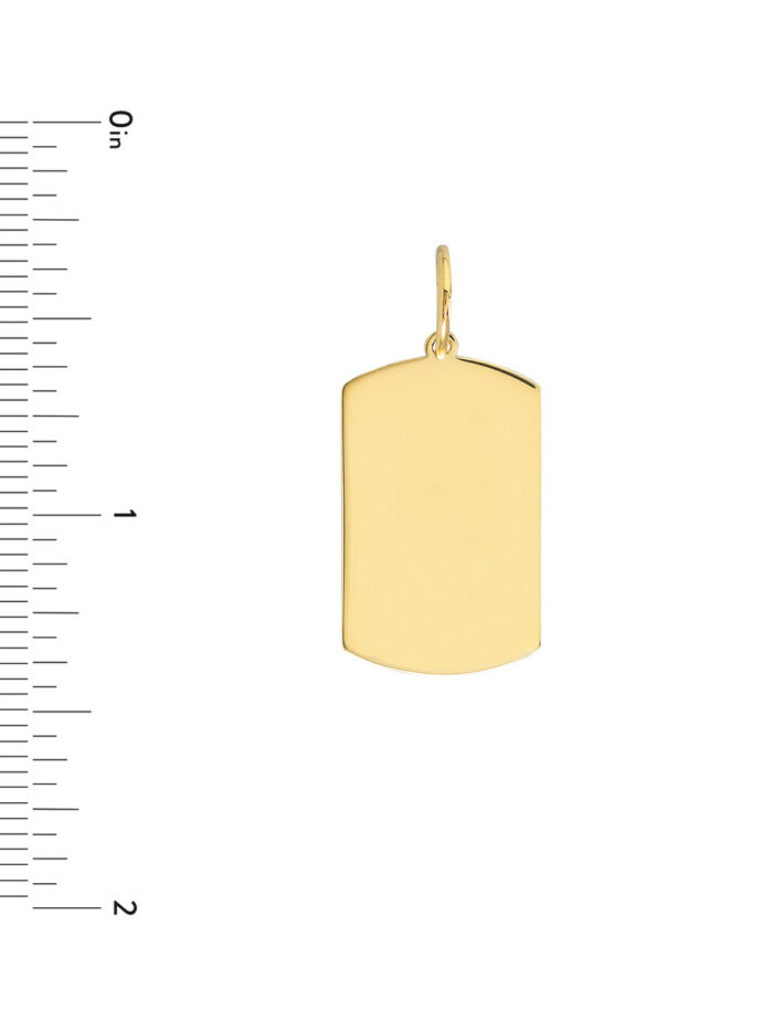 This classic dog tag charm is a timeless and stylish choice. Crafted from durable 14K yellow gold, it features a distinctive rectangular shape perfect for engraving with your initials, a meaningful quote, or a special date. Wear it solo for a minimalist look or layer it with other charms for a personalized touch.