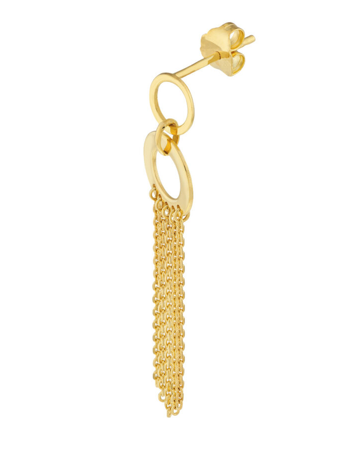Door Knocker Earrings with Fringe Chain – 14K Yellow Gold – by Dazyle