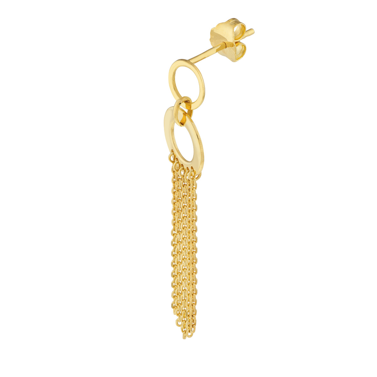 Turn heads with these bold and beautiful fringe earrings. Crafted from lustrous 14K yellow gold, the earrings feature eye-catching door knocker designs that add a touch of drama and personality. Layered with delicate fringe chains, these earrings make a statement and elevate any outfit.