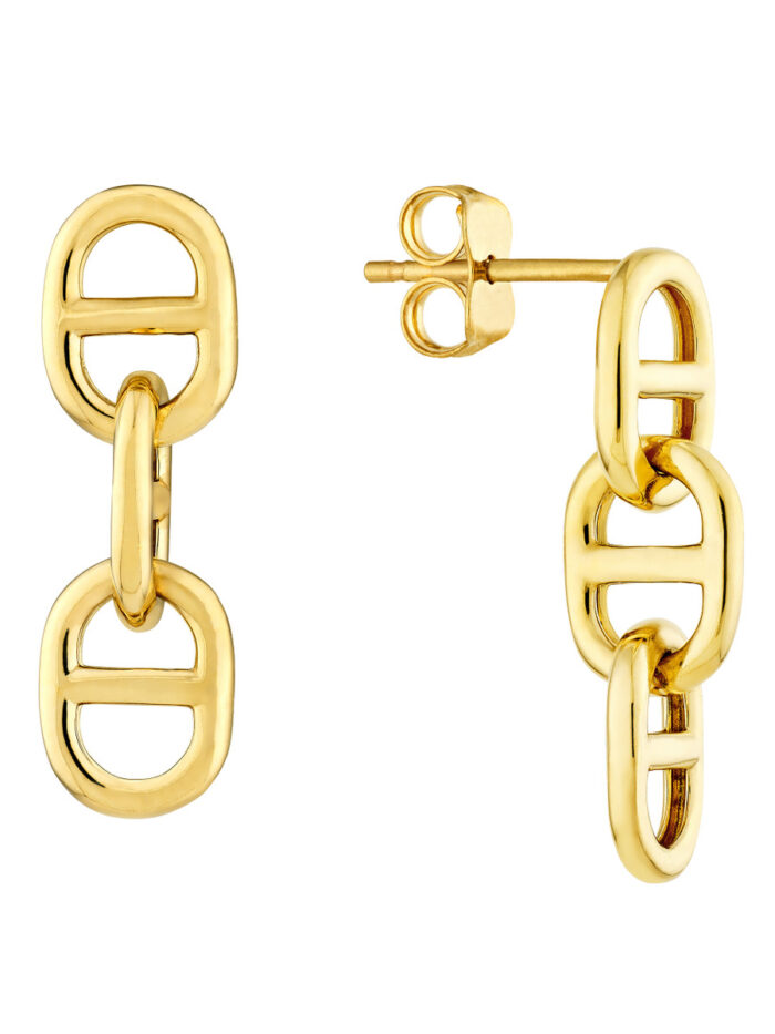 Elevate your ear stack with these sophisticated Double Link Earrings. Crafted from lustrous 14K yellow gold, these earrings feature a classic double link design that adds a touch of timeless elegance to any look. The secure post & nut closure ensures comfort and lasting wear.