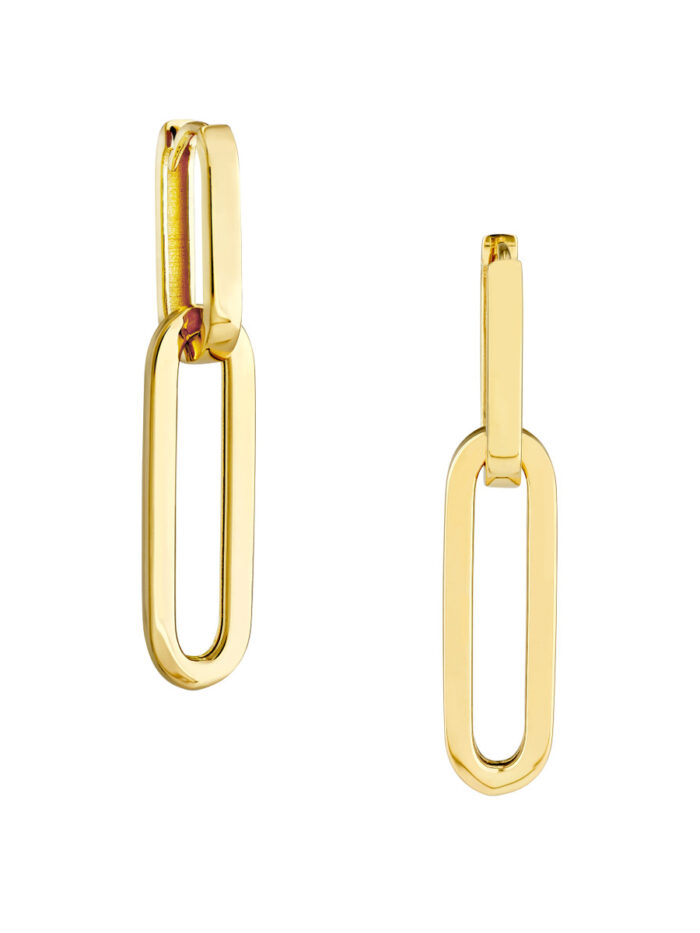 These whimsical and chic double paperclip earrings are the perfect way to add a touch of modern elegance to your look. Crafted from lustrous 14K yellow gold, these earrings feature a unique double link design for a bold yet feminine statement. The secure hinge back closure ensures comfortable wear all day long.