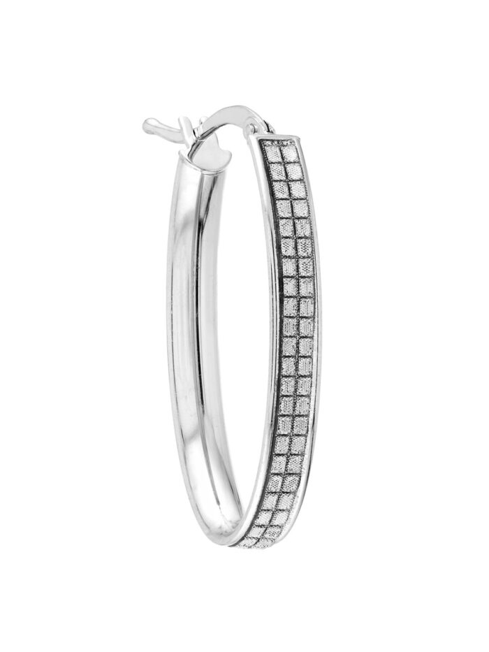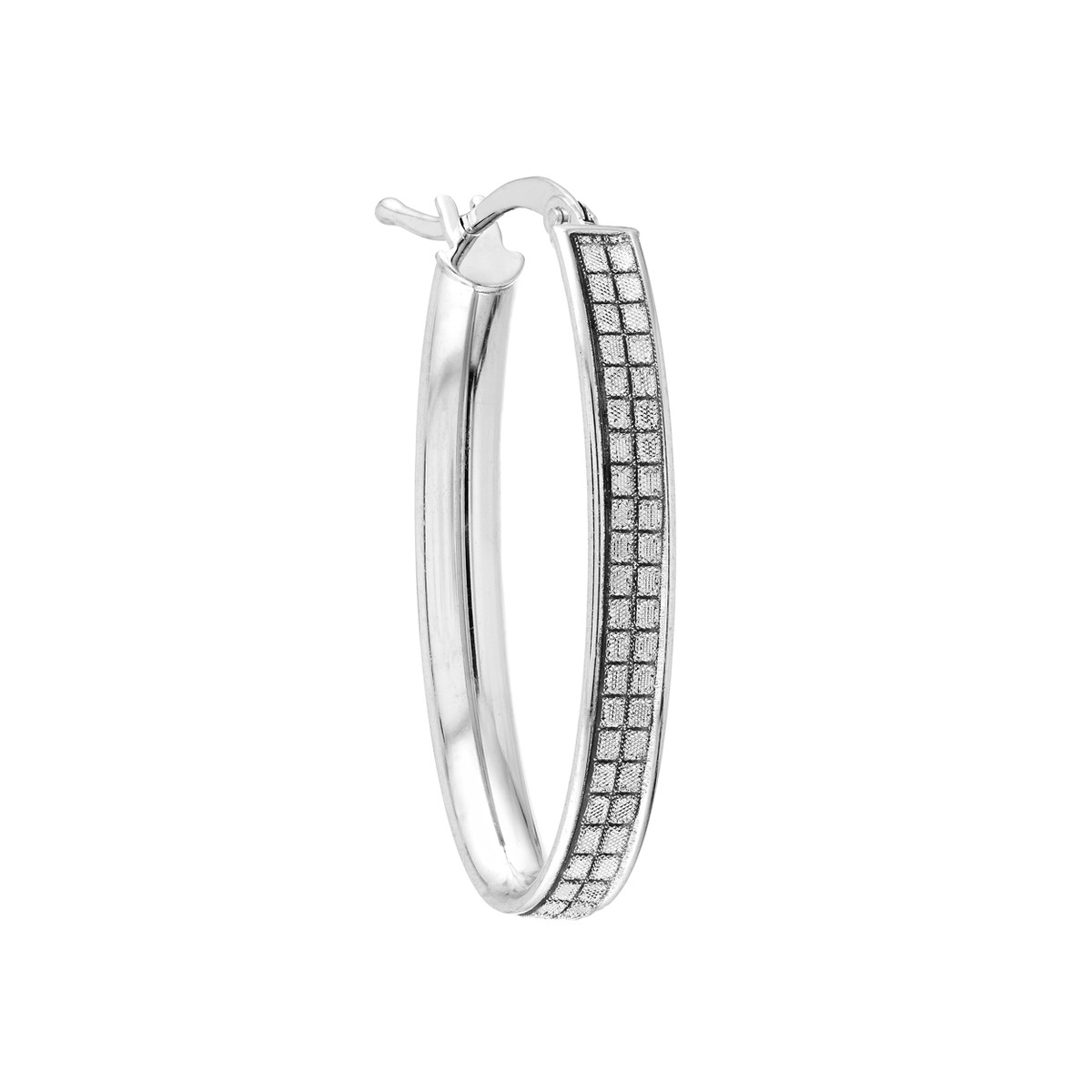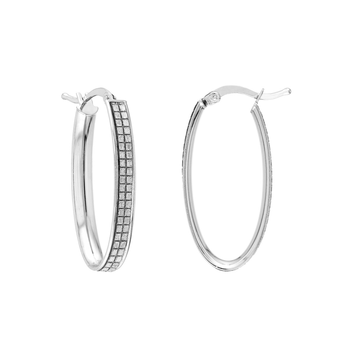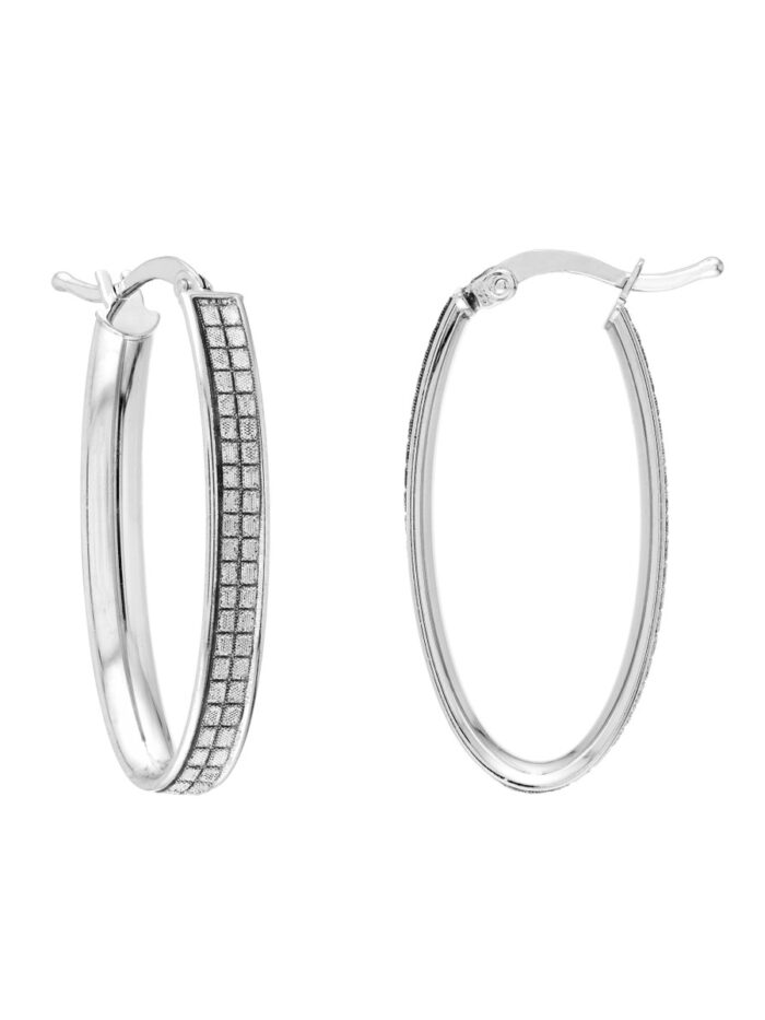 Make a statement with these eye-catching double sparkle oval hoops. Crafted from sterling silver, these elongated hoops feature a mesmerizing double sparkle design that catches the light beautifully. The hinged closure ensures a secure and comfortable fit, making them perfect for adding a touch of elegance to any outfit.