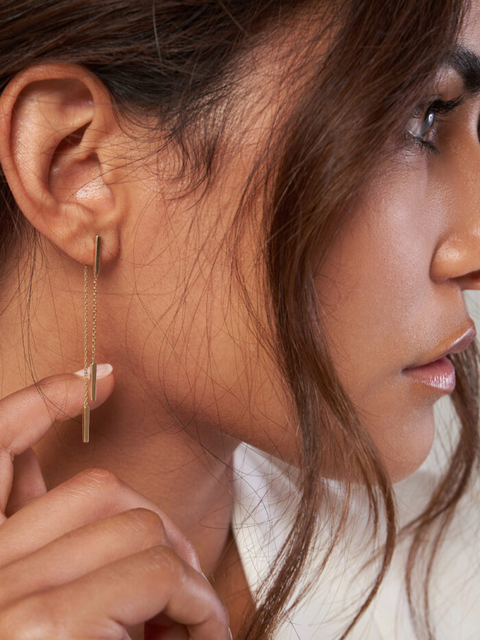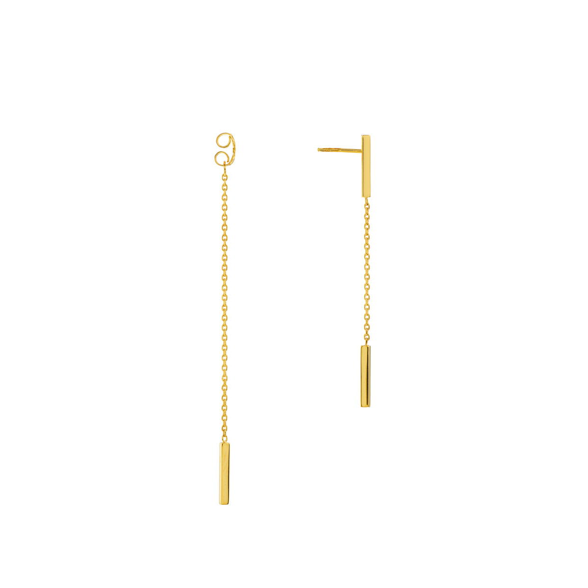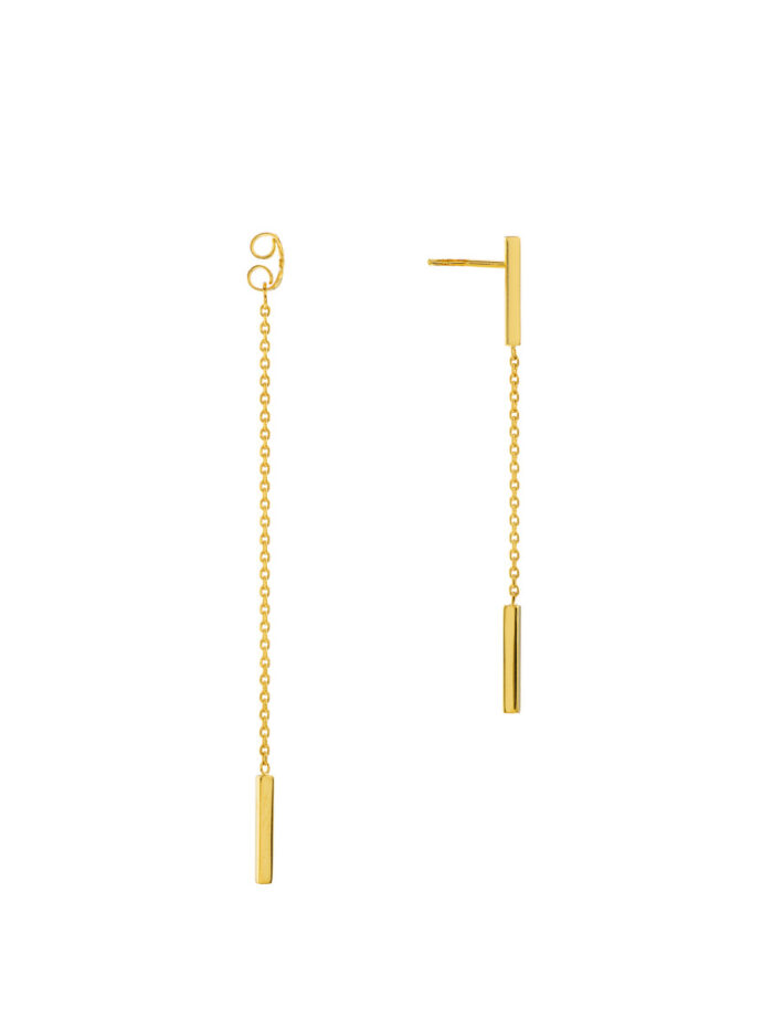 These 14K yellow gold double staple bar earrings are a chic and modern addition to any jewelry collection. The unique front and back design adds a touch of dimension, while the sleek staple bar silhouette exudes timeless elegance. Crafted from high-quality gold, these earrings are lightweight and comfortable to wear all day long.