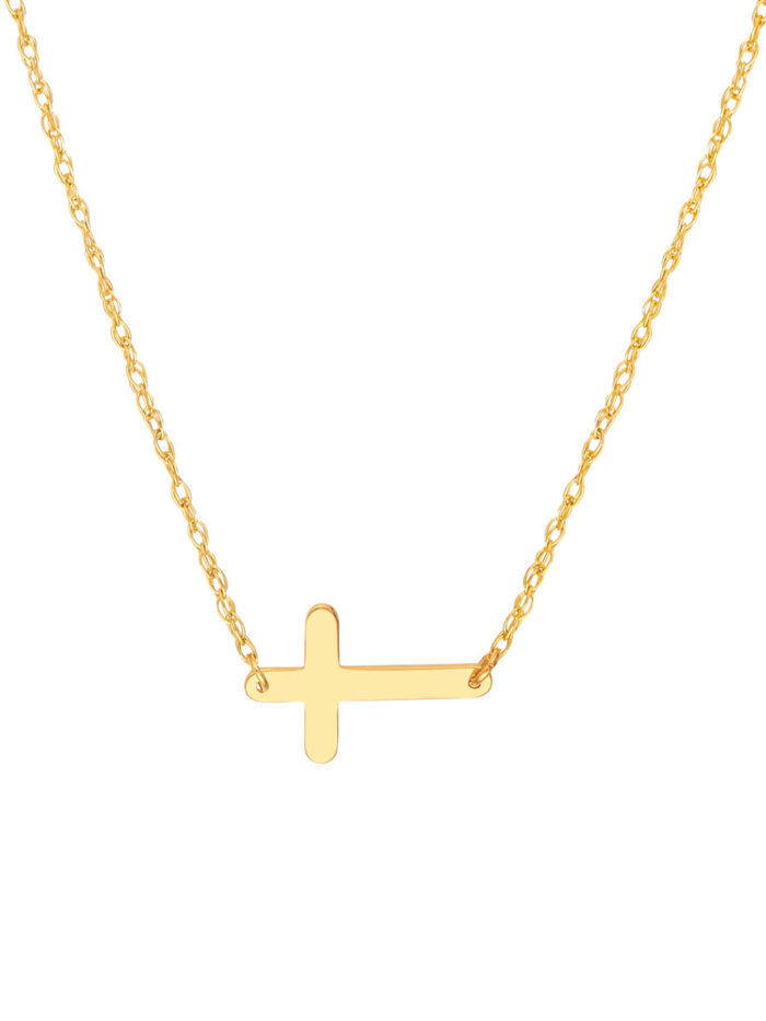 Display your faith in style with the E2W Cross Necklace from Dazyle’s So You collection. This 14K yellow gold necklace features a horizontal cross pendant, symbolizing faith and hope. The cable chain adds a classic touch, and the adjustable length allows for a personalized fit, ranging from 16 to 18 inches. Crafted with high-quality materials, this necklace is designed to be a cherished piece in your jewelry collection.
