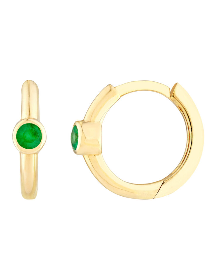 Experience enduring style with these elegant Emerald Bezel Hoop Earrings, crafted from gleaming 14K yellow gold. The captivating emerald accents are beautifully showcased in a bezel setting, adding a touch of sparkle and sophistication. These huggie earrings offer a classic and versatile look, perfect for everyday wear or special occasions.