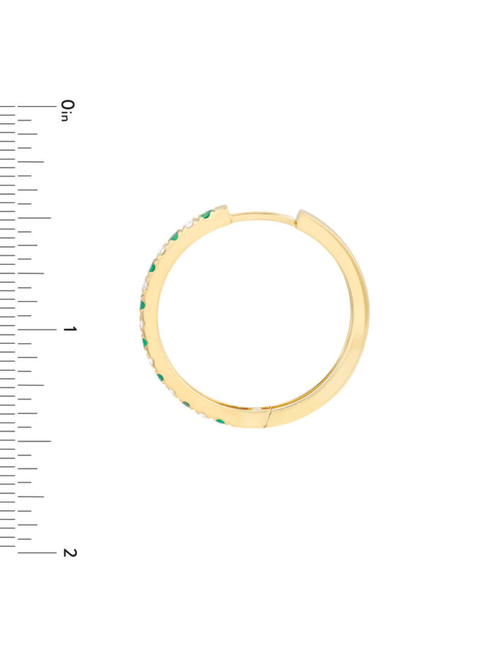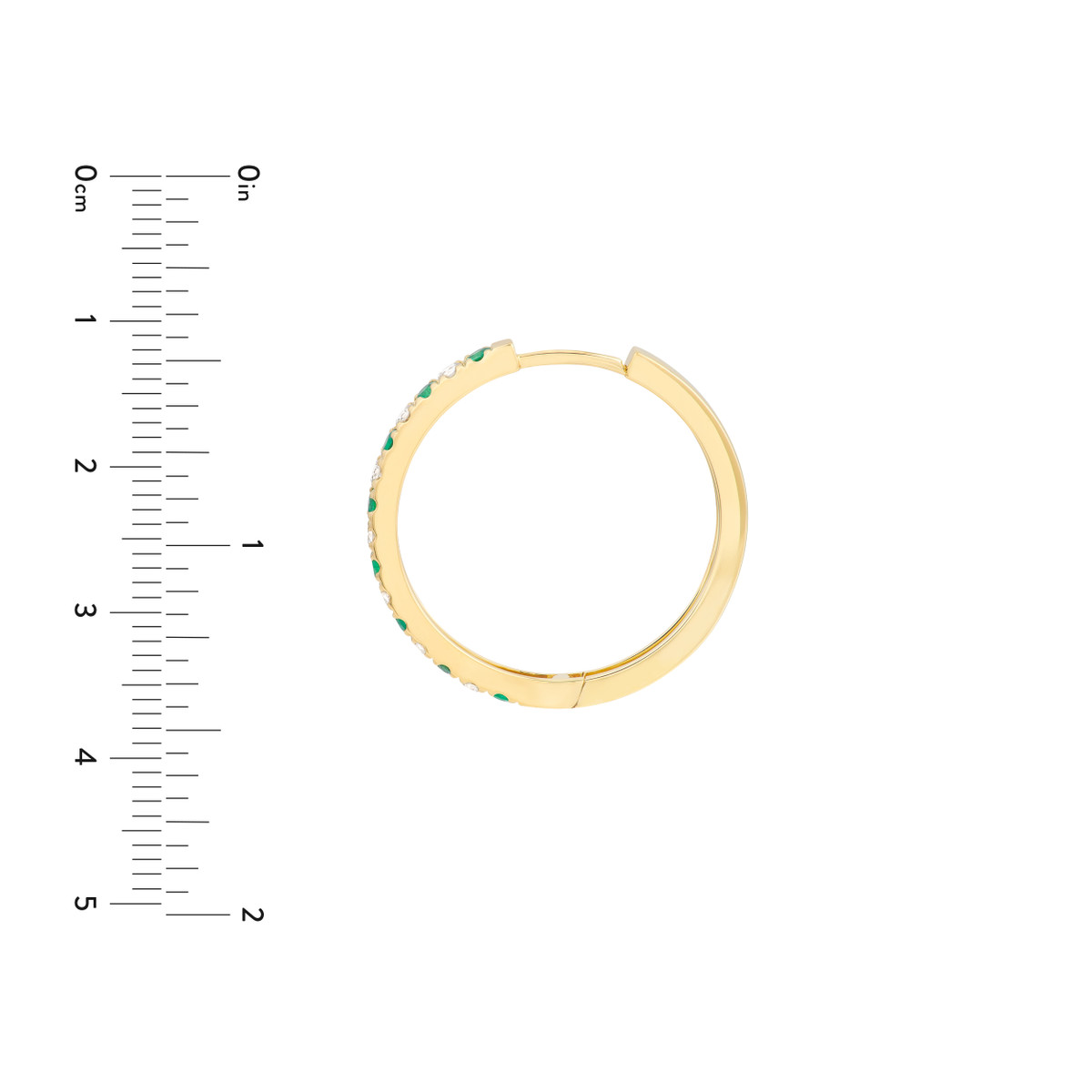 Emerald & Diamond Hoop Earrings (3/8tcw) – 14K Yellow Gold – 25mm – by Dazyle