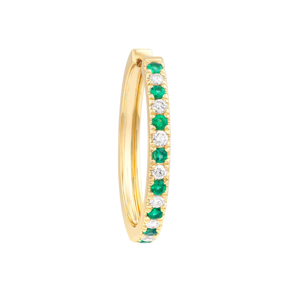 Turn heads with these dazzling Emerald & Diamond Hoop Earrings. Featuring a vibrant mix of 2mm emeralds and sparkling 3/8tcw diamonds, these 25mm hoops are a statement of modern elegance. Crafted in 14K yellow gold, they’re designed to add a touch of luxury to any occasion.
