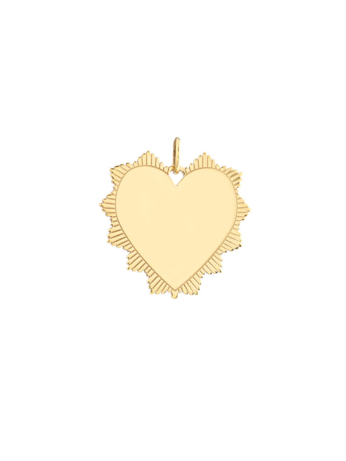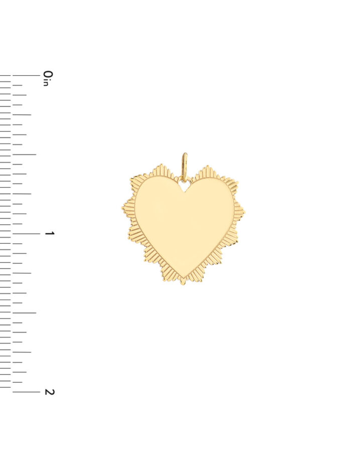 This edgy and romantic spike heart pendant is the perfect way to express your unique style. Crafted from lustrous 14K yellow gold, this pendant features a bold spike heart design, making it a statement piece that is sure to turn heads. You can customize it with a special message or initials, making it a truly personal and meaningful gift.