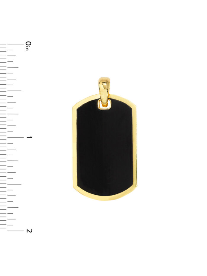 Elevate your style with our stunning Fancy Black Enamel Dog Tag Pendant. Crafted from luxurious 14K yellow gold, this pendant features a striking black enamel finish and a unique border design, adding a touch of sophistication to any look. Add it to your favorite chain for a bold statement piece or layer it with other pendants for a personalized touch.