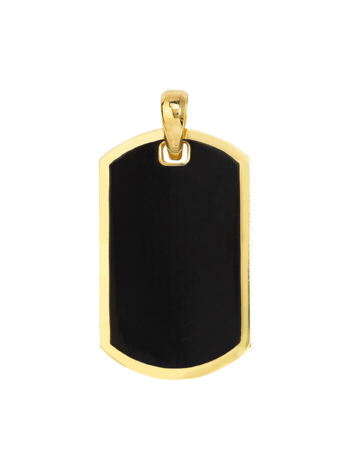 Elevate your style with our stunning Fancy Black Enamel Dog Tag Pendant. Crafted from luxurious 14K yellow gold, this pendant features a striking black enamel finish and a unique border design, adding a touch of sophistication to any look. Add it to your favorite chain for a bold statement piece or layer it with other pendants for a personalized touch.