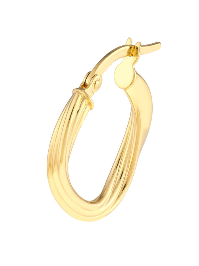 Fluted Oval Hoop Earrings – 14K Yellow Gold – by Dazyle