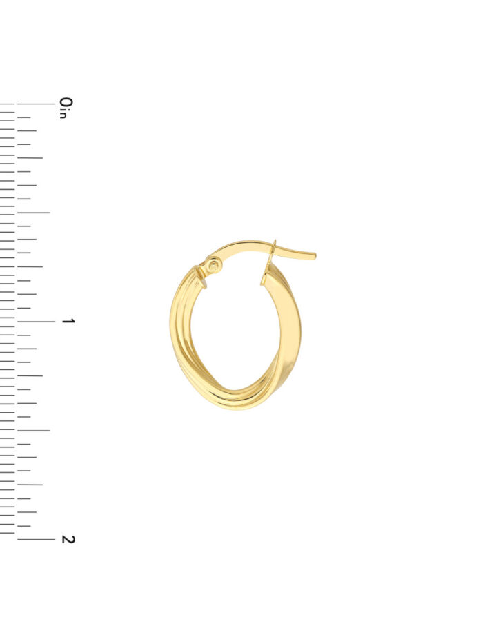 Elevate your style with these captivating fluted oval hoop earrings. Crafted from 14K yellow gold, these hoops feature a unique design that combines a fluted finish with a twisted accent, adding a touch of texture and dimension. The oval shape adds a touch of elegance, while the hinge closure ensures a secure and comfortable fit.
