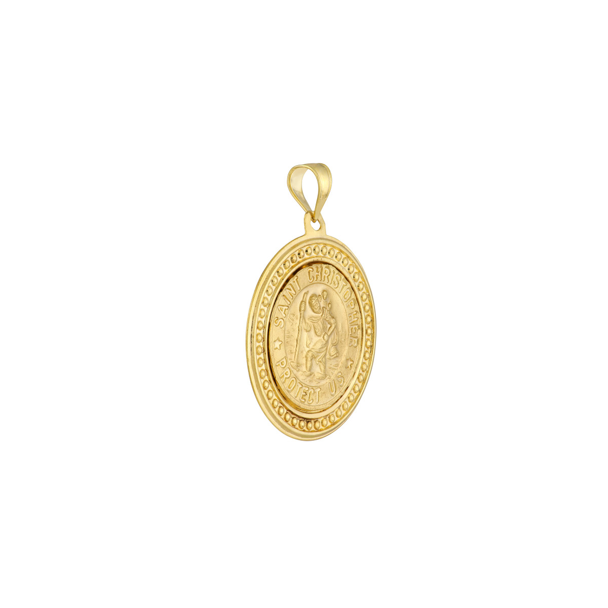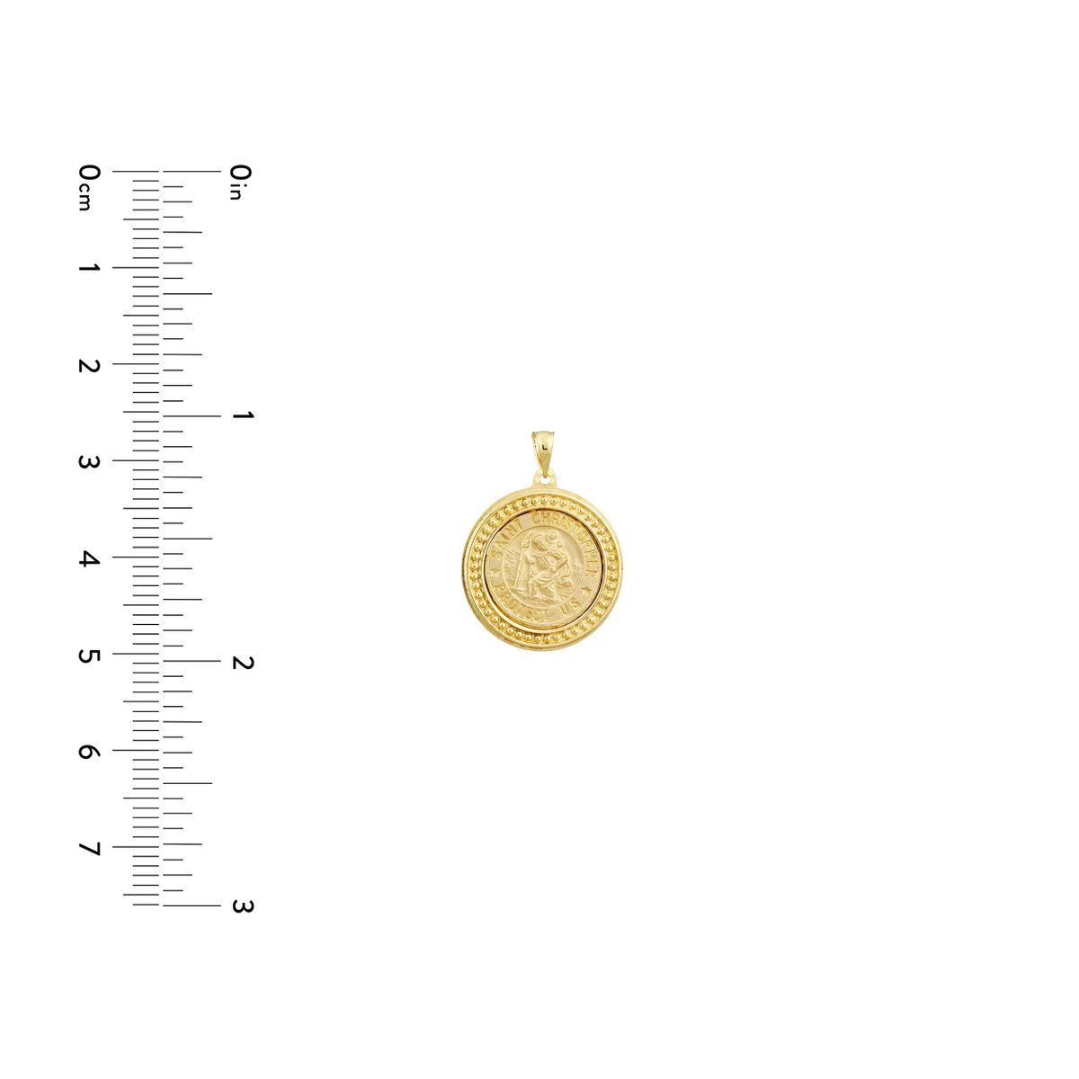 Embrace protection and guidance with this Framed St. Christopher Medal. Crafted from gleaming 14K yellow gold, this round pendant features a detailed design of St. Christopher, patron saint of travelers and protection. The framed design adds an extra touch of elegance and makes it a truly special gift for those seeking divine guidance.