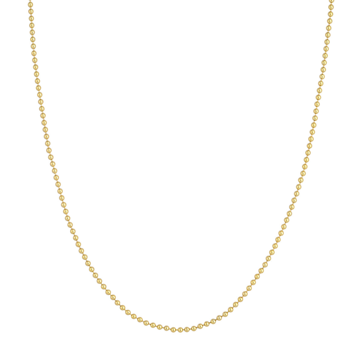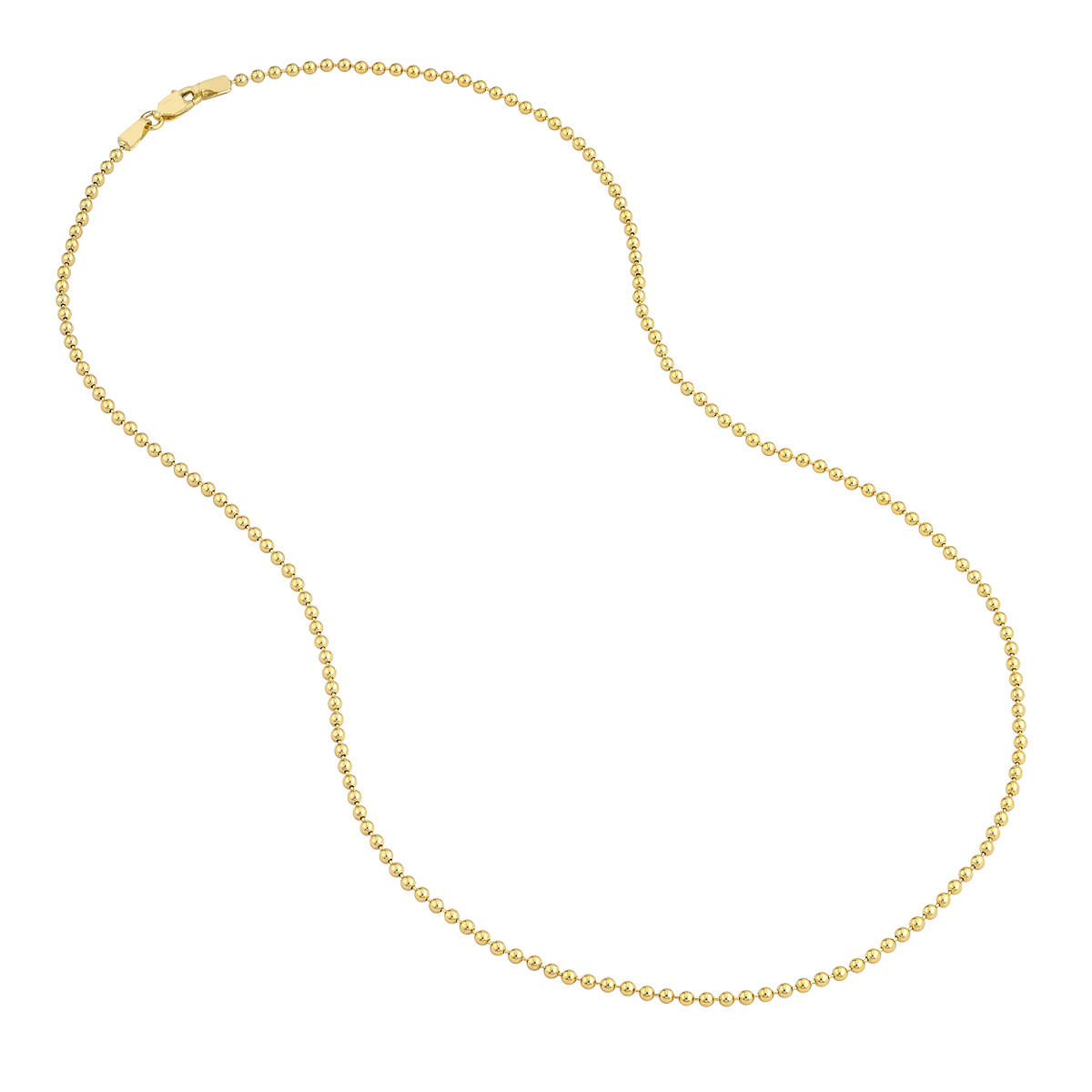 Embrace everyday elegance with this stunning 10K yellow gold bead chain necklace. Measuring 16 inches in length, it’s the perfect size for layering or wearing solo. The secure lobster closure ensures a comfortable and confident fit. Crafted with meticulous care, this delicate chain is a timeless addition to any jewelry collection.