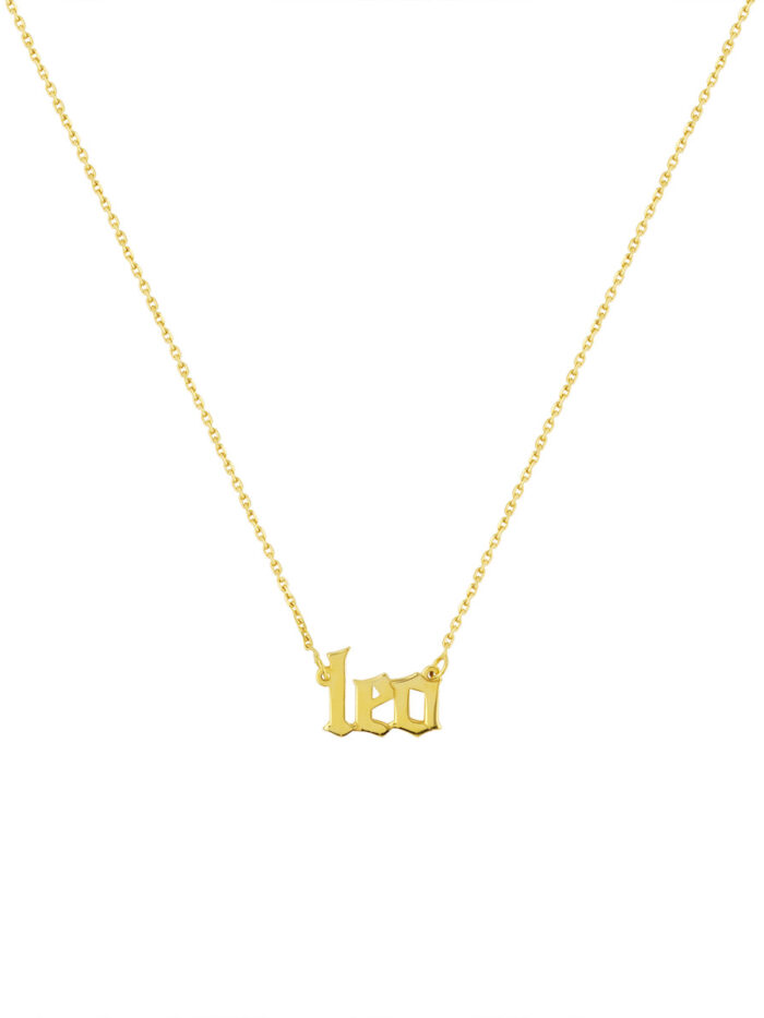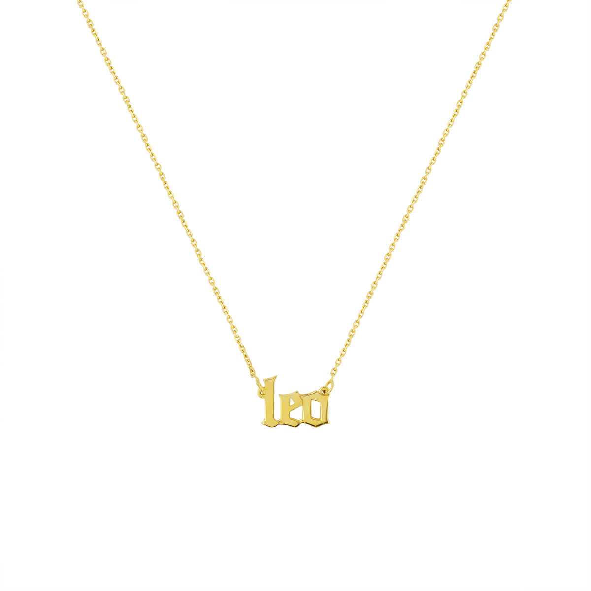Shine brightly with the bold Gothic Leo Nameplate Necklace. Crafted from radiant 14K yellow gold, this necklace features the name “Leo” in a majestic gothic font, embodying the confidence and generosity of this zodiac sign. The 18-inch link chain provides a comfortable and stylish wear, making this necklace a perfect way to celebrate your Leo spirit.