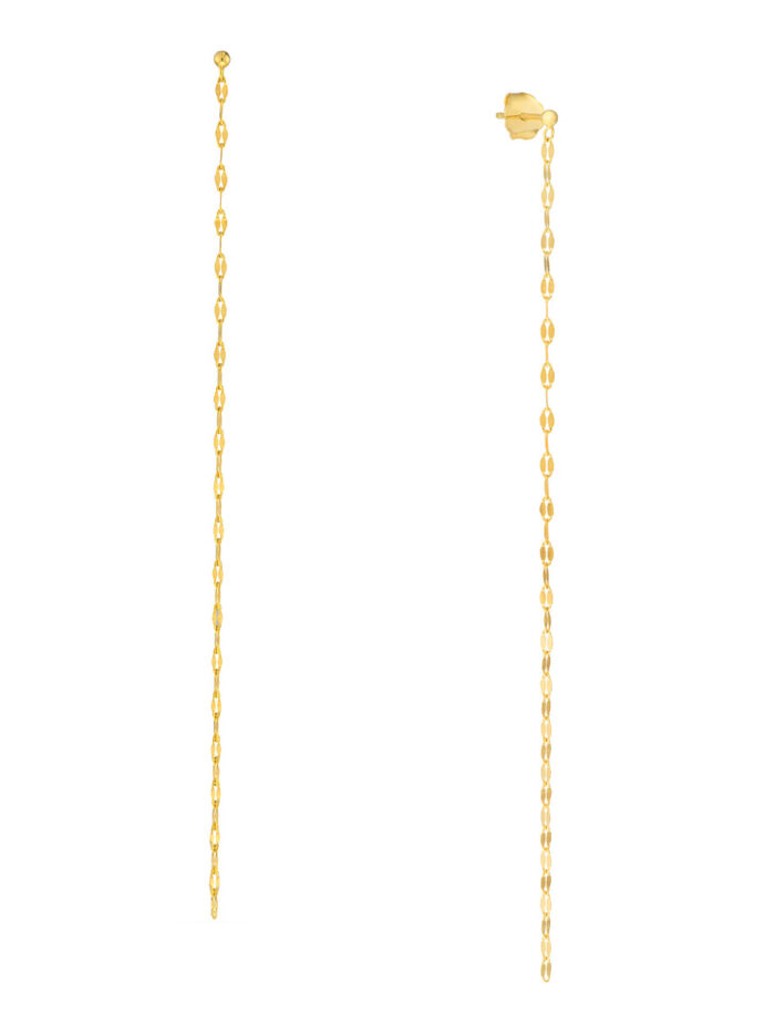 Make a statement with these captivating Hammered Forzentina Chain Shoulder Duster Earrings. Crafted from luxurious 14K yellow gold, these earrings feature a unique hammered texture and a stunning Forzentina chain design that drapes elegantly down your shoulders. Their dramatic length adds a touch of glamour to any outfit, perfect for special occasions or adding a touch of elegance to your everyday look.