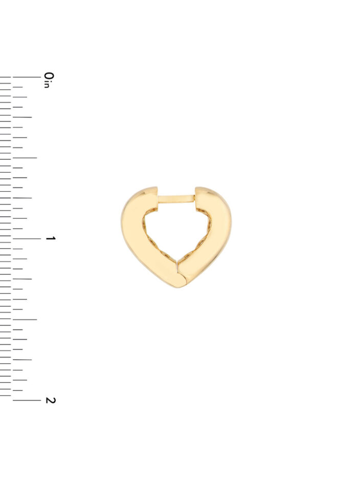 Adorn your ears with a touch of love and shine with these Heart Huggie Earrings. Crafted from 14K yellow gold, these charming earrings feature a delicate heart design and secure with a convenient snap-lock clasp. Measuring 16.74mm in length and 14.36mm in width, they add a subtle yet stylish touch to any outfit.