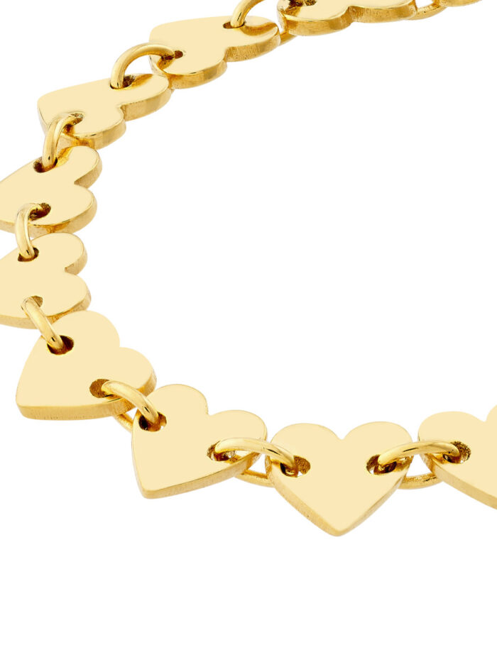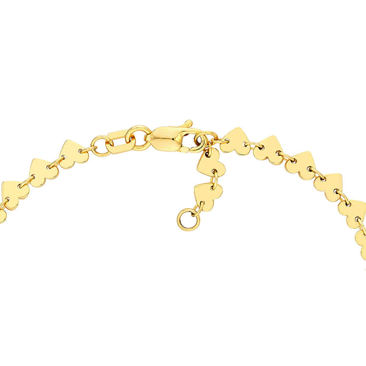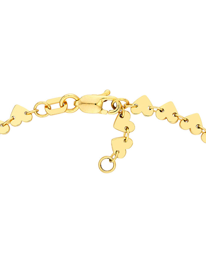 Add a touch of love to your wrist with this charming heart station bracelet. Crafted from lustrous 14K yellow gold, this bracelet features delicate heart charms interspersed along a classic cable chain. The adjustable design allows for a comfortable fit, making it perfect for layering or wearing solo. A timeless piece that speaks to the enduring power of love, this bracelet is a thoughtful gift for yourself or a loved one.