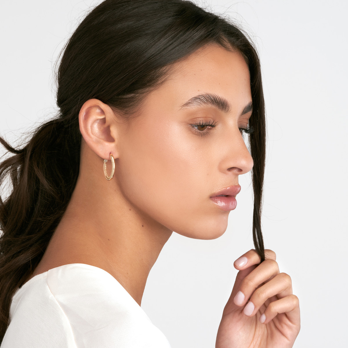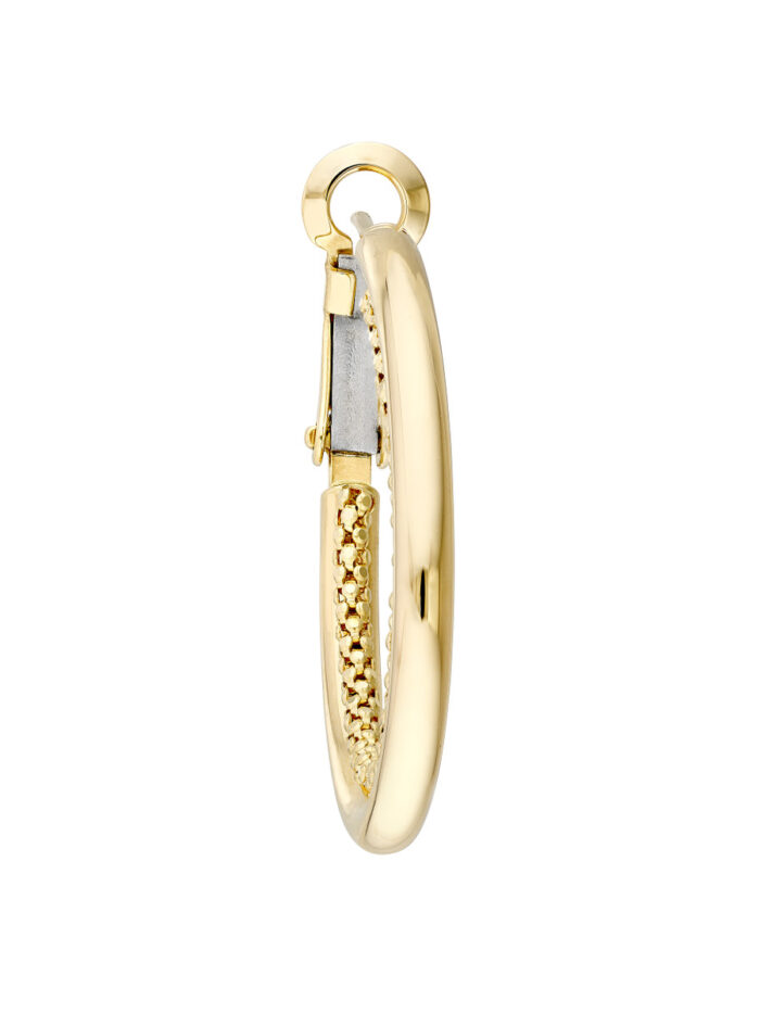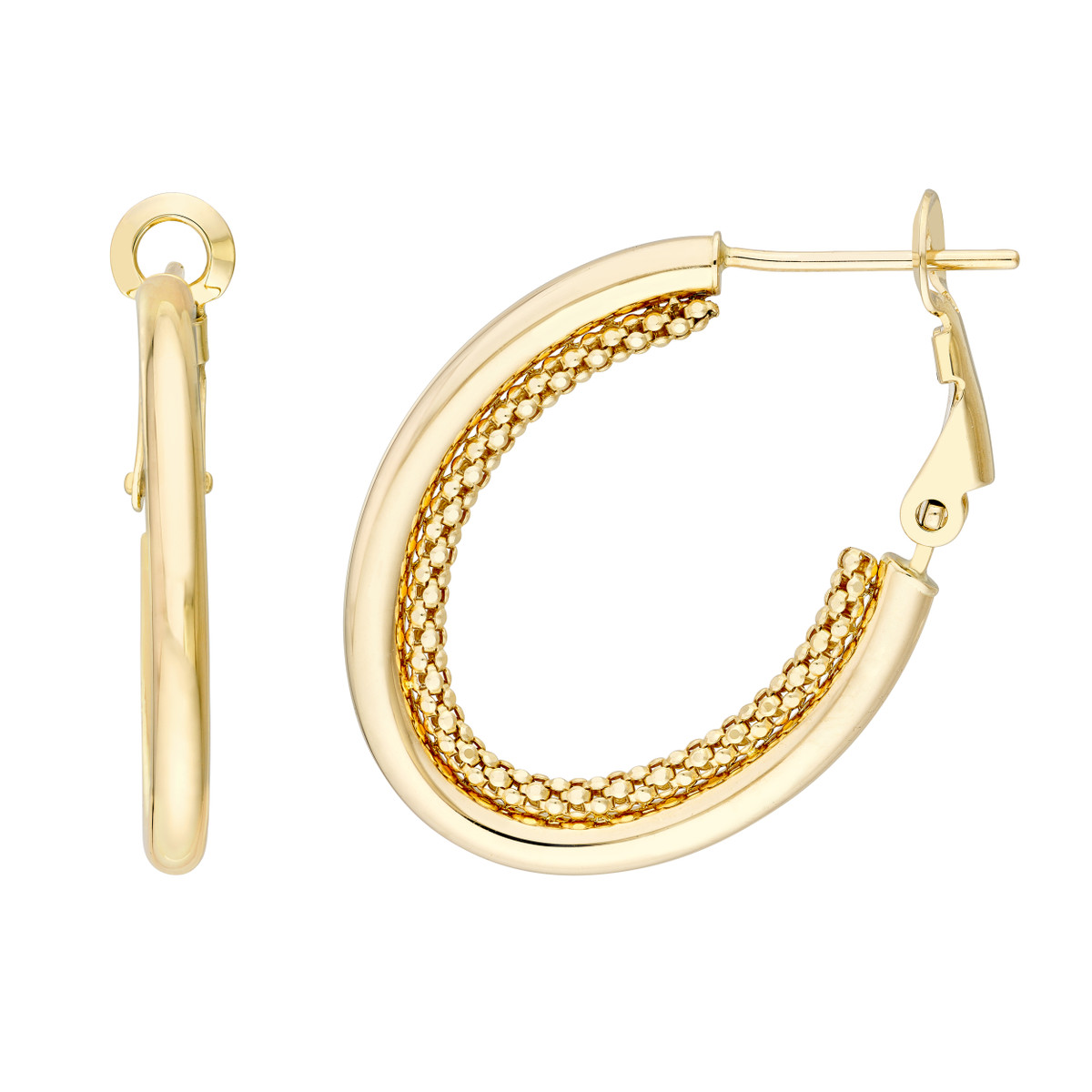 Add a touch of playful sophistication to your style with these high polish popcorn double hoop earrings. Crafted from lustrous 14K yellow gold, the popcorn design adds a unique and eye-catching texture. The double hoop silhouette offers a modern and trendy look. The secure omega back closure ensures they stay comfortably in place.