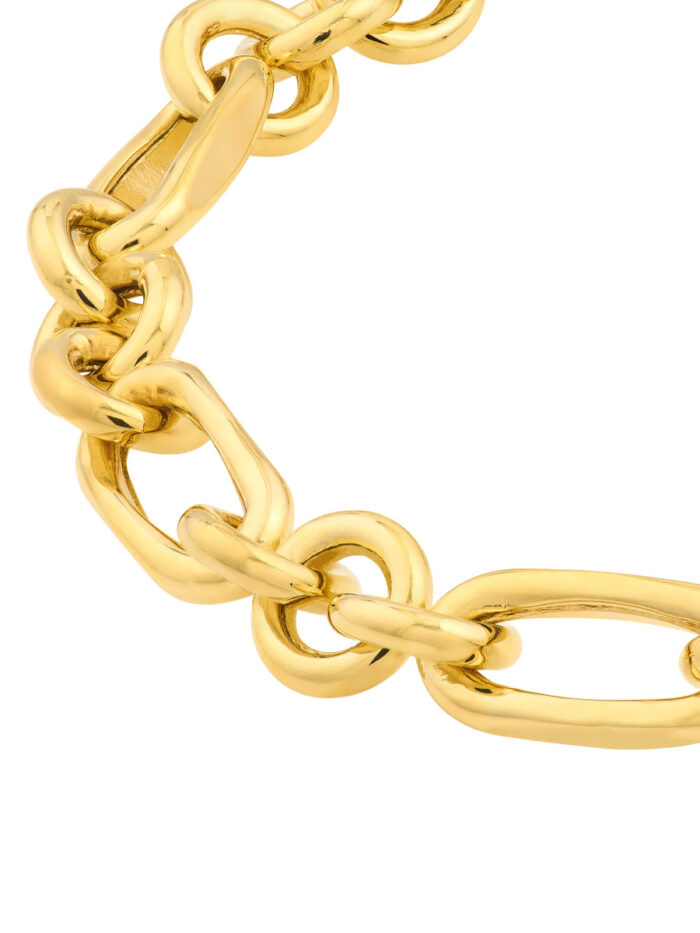 This sophisticated Hollow Rolo Oval Link Bracelet is crafted from lustrous 14K yellow gold, featuring a unique oval link design. The sleek and polished bracelet secures with a secure lobster clasp, making it perfect for everyday wear. Its timeless design adds a touch of elegance to any look.