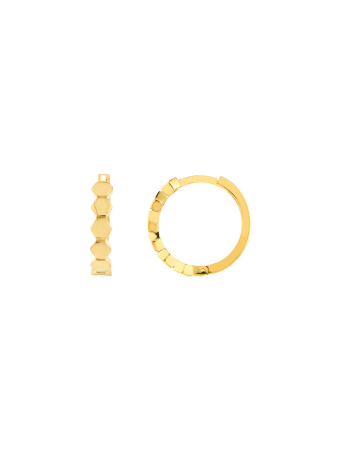 Elevate your everyday look with these exquisite honeycomb huggie hoop earrings crafted from 14K yellow gold. Their classic polished design adds a touch of timeless elegance, making them an essential for any jewelry collection. With a secure hinge closure, these hoops are both stylish and comfortable to wear. Whether you’re dressing up for a special occasion or adding a subtle touch of luxury to your casual attire, these huggie hoops are the perfect choice.