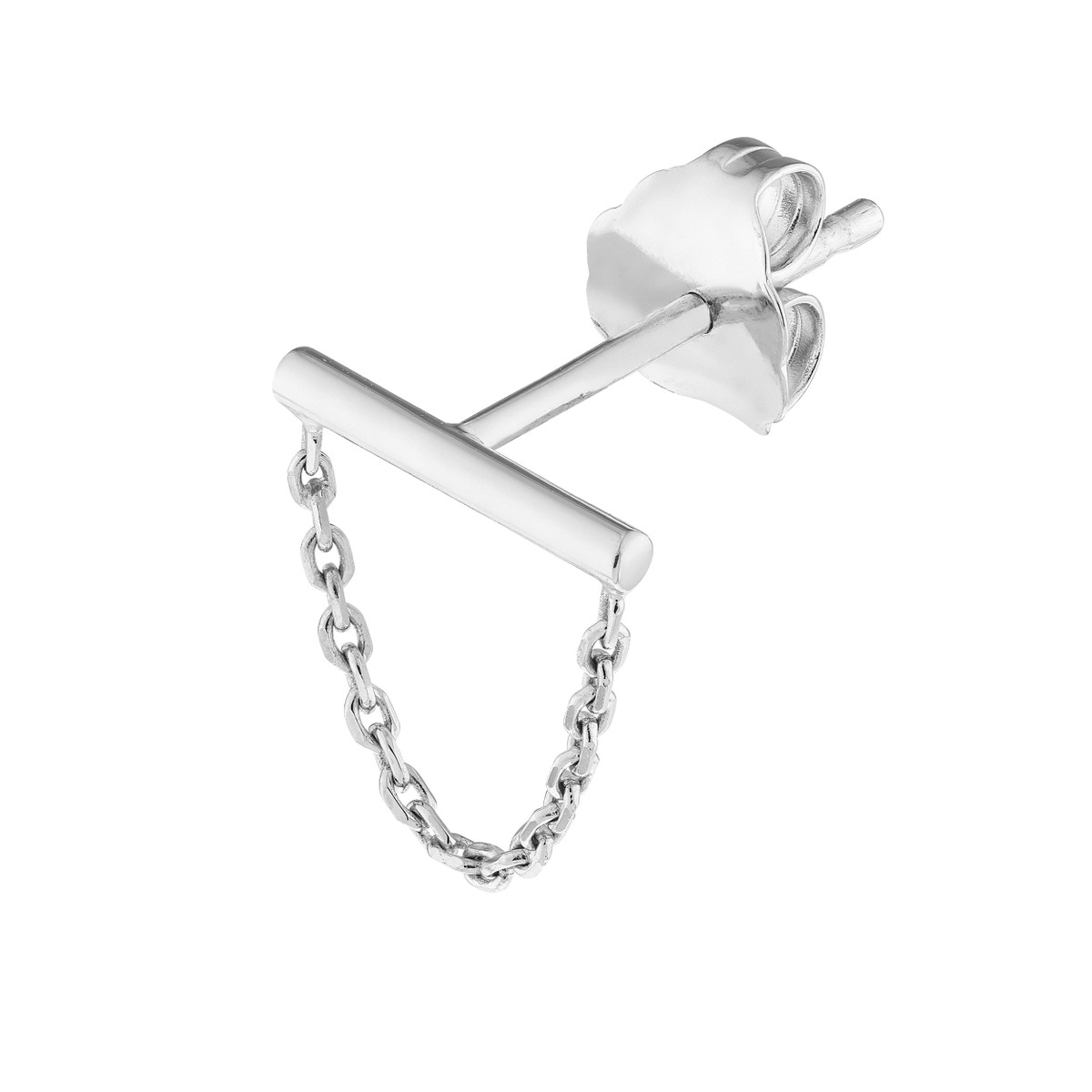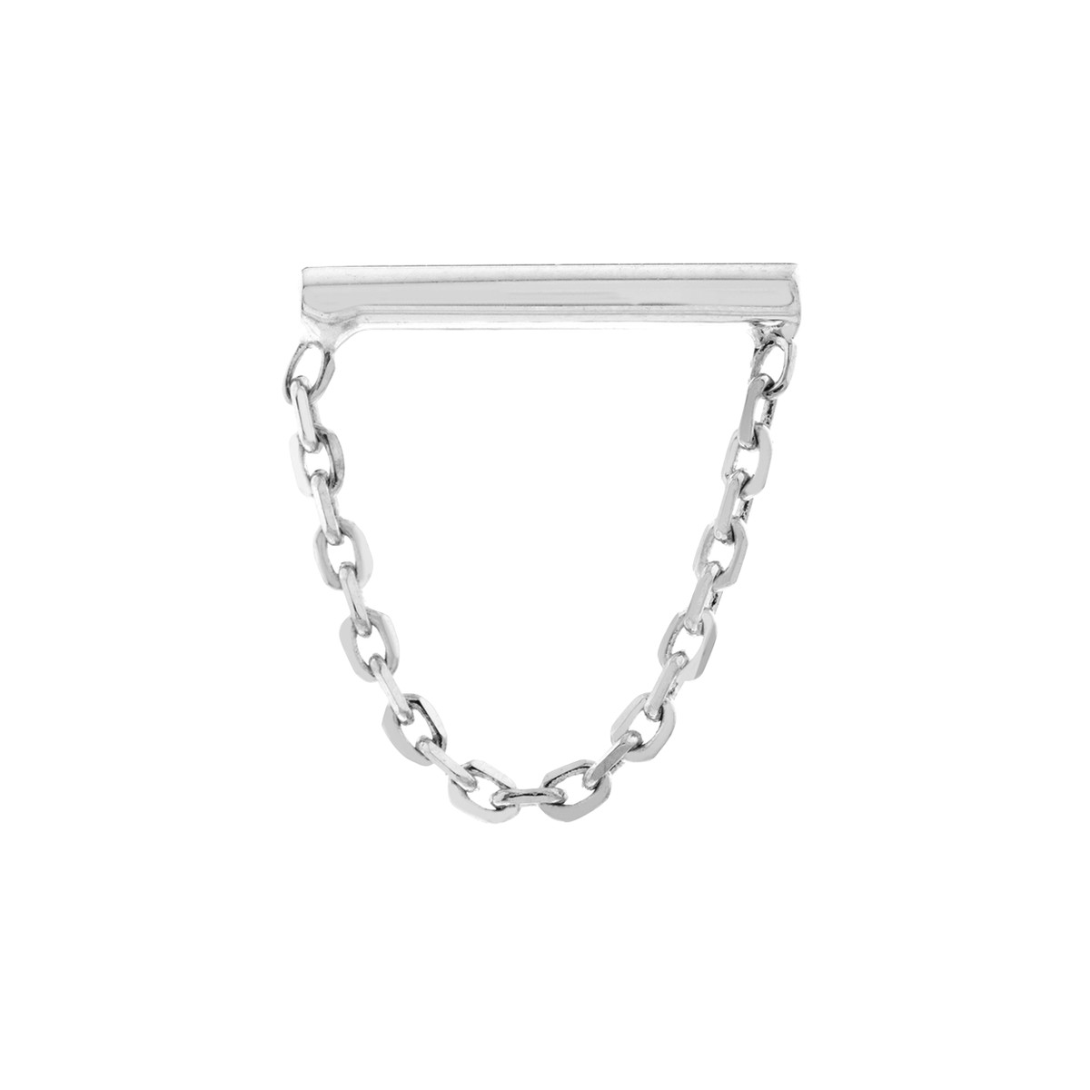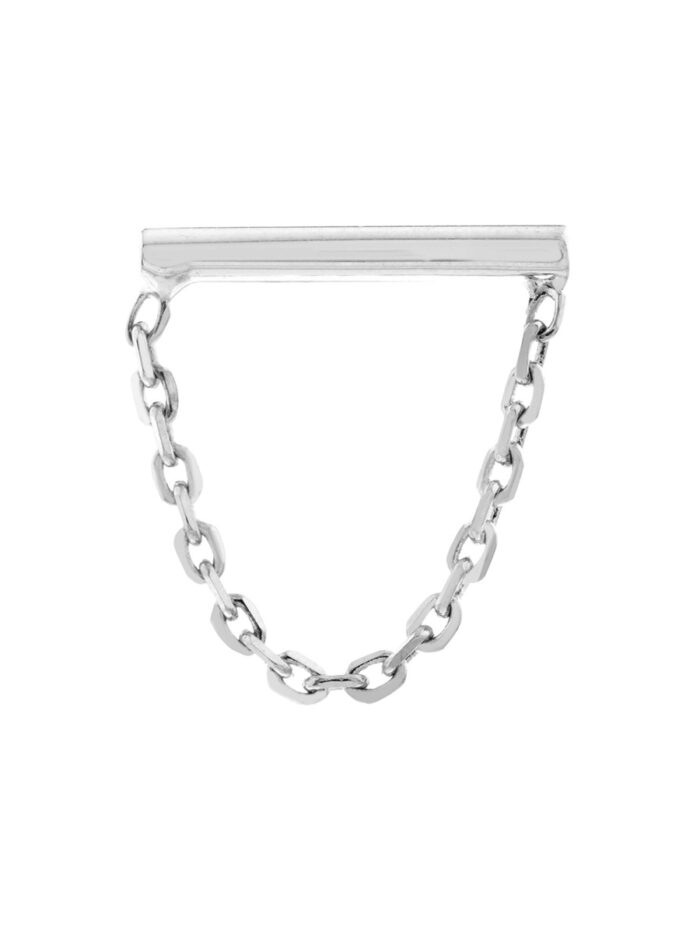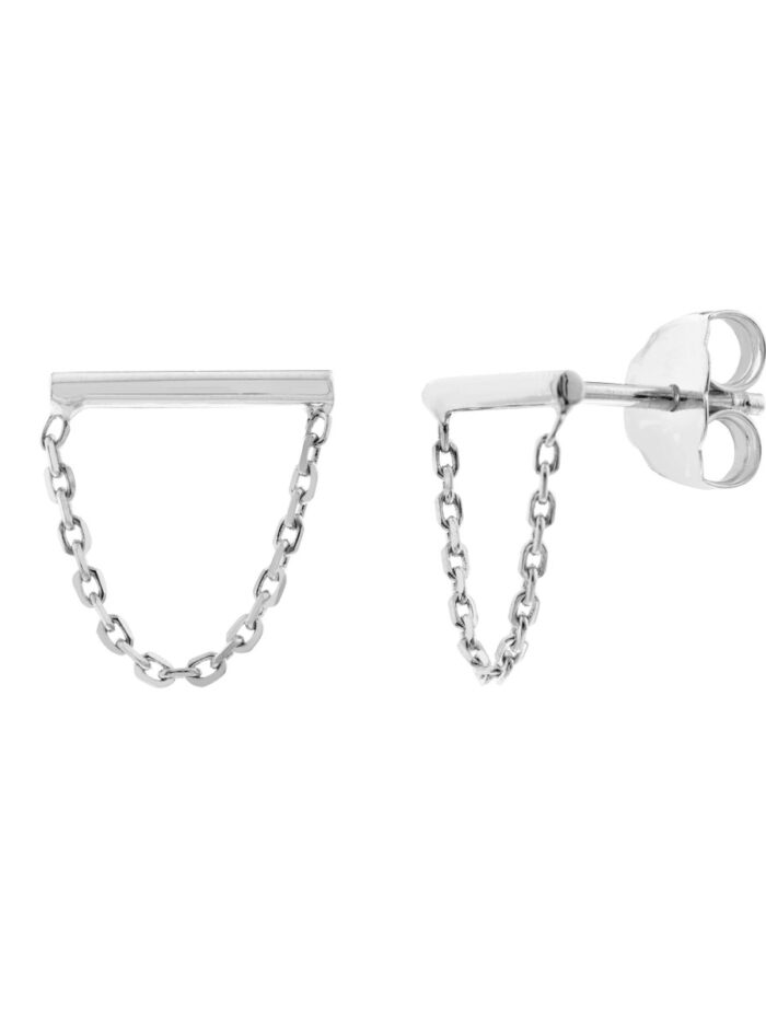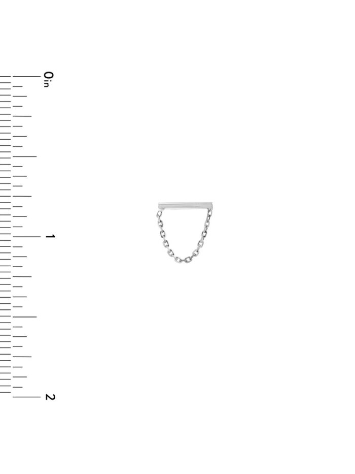 These elegant Horizontal Bar Earrings with Chain Drape are crafted from luxurious 14K white gold. The petite staple bar design adds a touch of modern minimalism, while the delicate chain drape adds a touch of movement and sparkle. These earrings are perfect for everyday wear or for dressing up a special occasion.