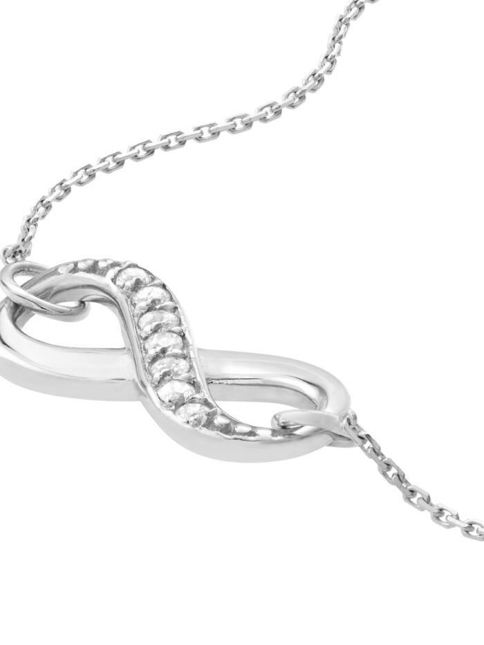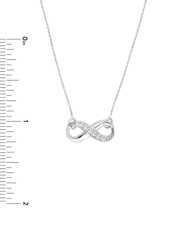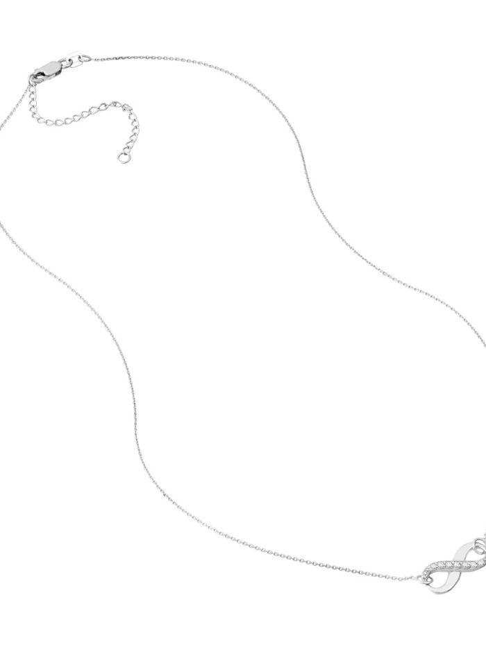 Embrace the timeless symbol of infinity with this elegant necklace. Crafted from lustrous 14K white gold, this piece features a delicate infinity design with a sparkling diamond accent, adding a touch of brilliance to any outfit. The adjustable chain allows for a personalized fit, while the secure lobster clasp ensures it stays securely in place.