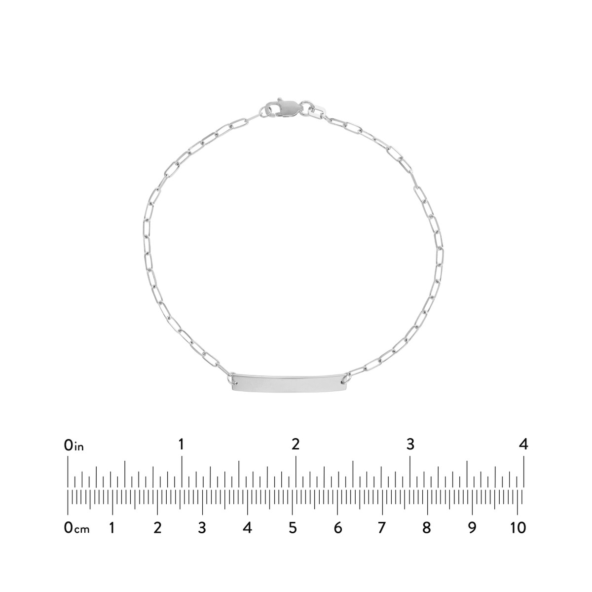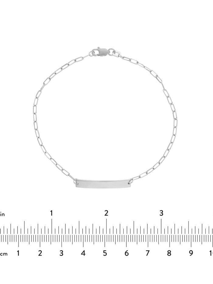 Give a thoughtful and practical gift with this adorable kid’s ID bracelet. Crafted from gleaming 14K white gold, this bracelet features a classic anchor chain and a secure lobster clasp closure. The bracelet is designed to be engraved with your child’s name or a special message, making it a cherished keepsake. This durable and stylish bracelet is perfect for everyday wear.