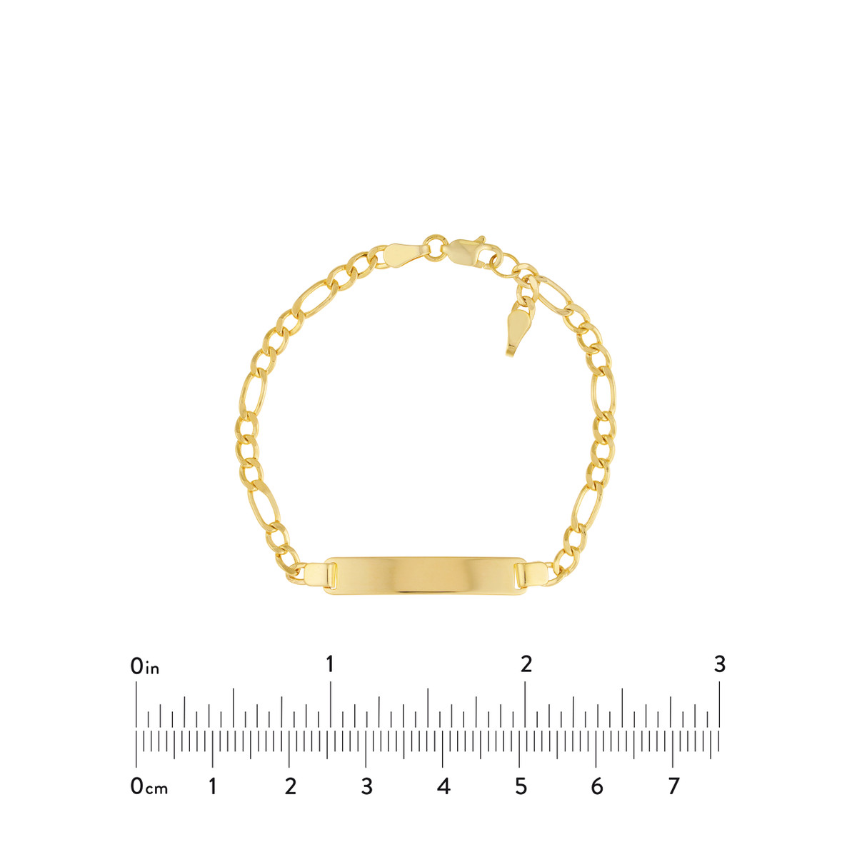 Kid’s Initial ID Bracelet on Figaro Chain – 14K Yellow Gold – 6 Inch – by Dazyle