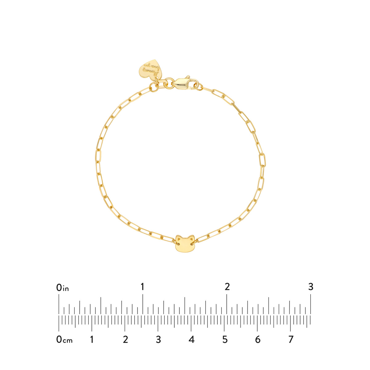 This adorable bracelet is a purrfect gift for any cat-loving child. Crafted in 14K Yellow Gold, it features a classic paper clip chain design and a cute cat charm. The secure lobster closure ensures a comfortable and safe fit for everyday wear.