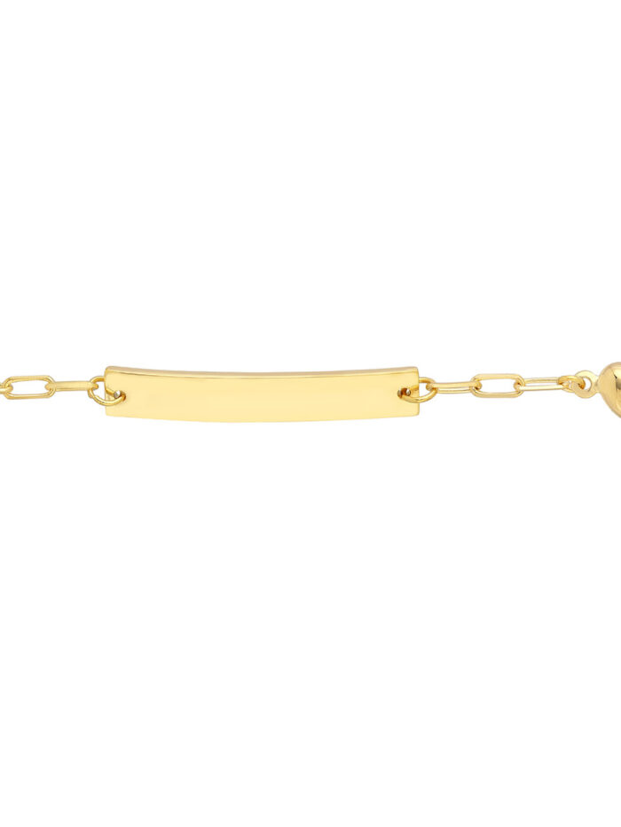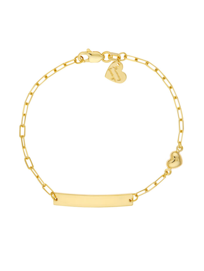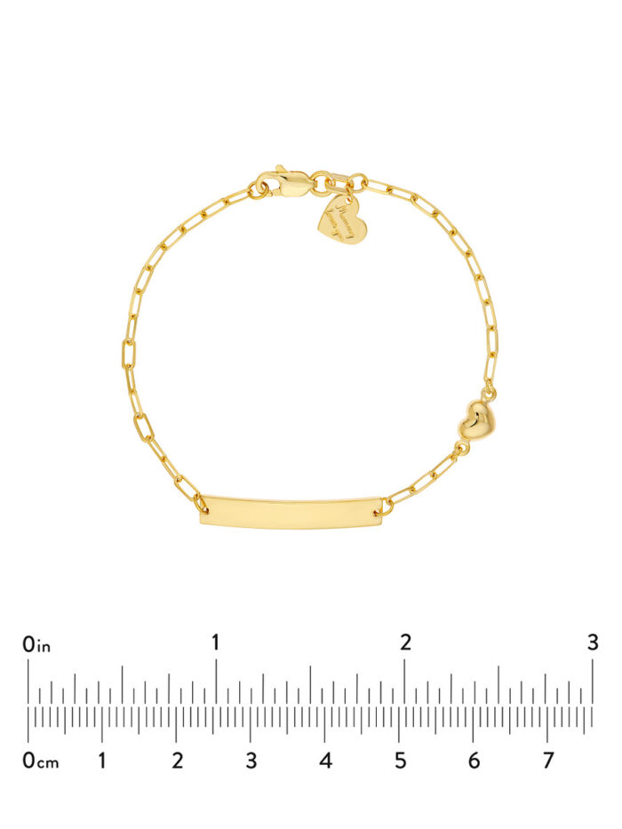 Make a cherished gift with this adorable Kid’s Paper Clip Chain ID Bracelet featuring a heartfelt design. Crafted in 14K Yellow Gold, this bracelet boasts a classic paperclip chain and a space to personalize with an engraved ID plate. The secure lobster clasp ensures a comfortable fit for growing wrists.
