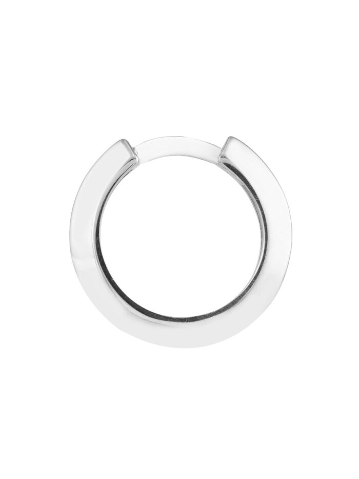 Embrace modern minimalism with these chic knife edge polished mini hoops. Crafted from pristine 14K white gold, these huggies boast a sleek and sophisticated design. Their minimal profile and high-shine finish create a look that is both understated and eye-catching.