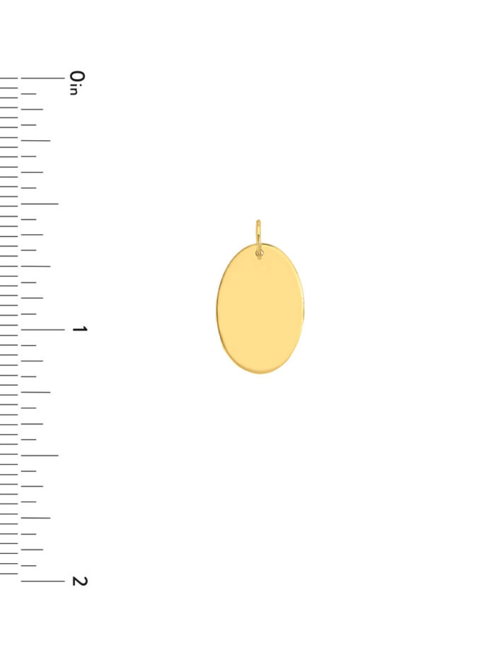 Make a statement with this elegant large oval engravable charm. Crafted from lustrous 14K yellow gold, this substantial charm is perfect for creating a personalized and eye-catching look. Engrave it with your initials, a meaningful symbol, or a special message to make it truly unique.
