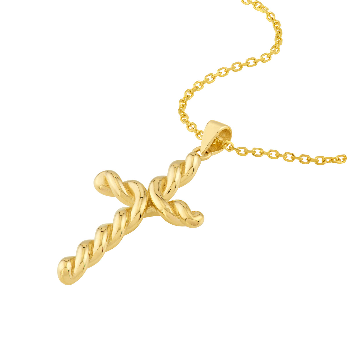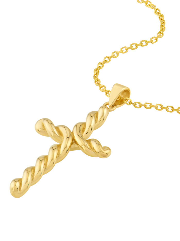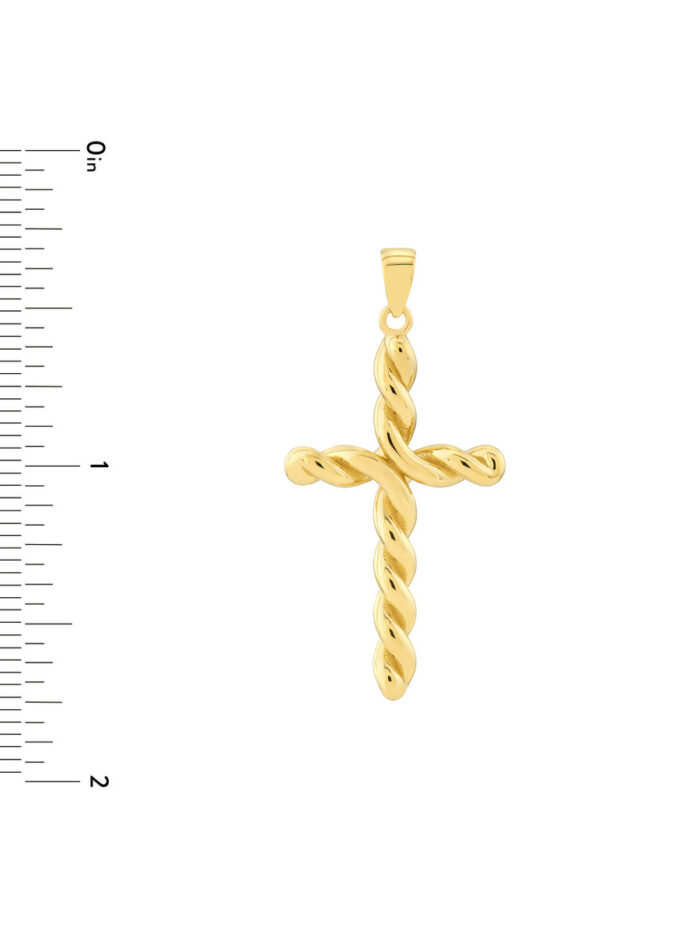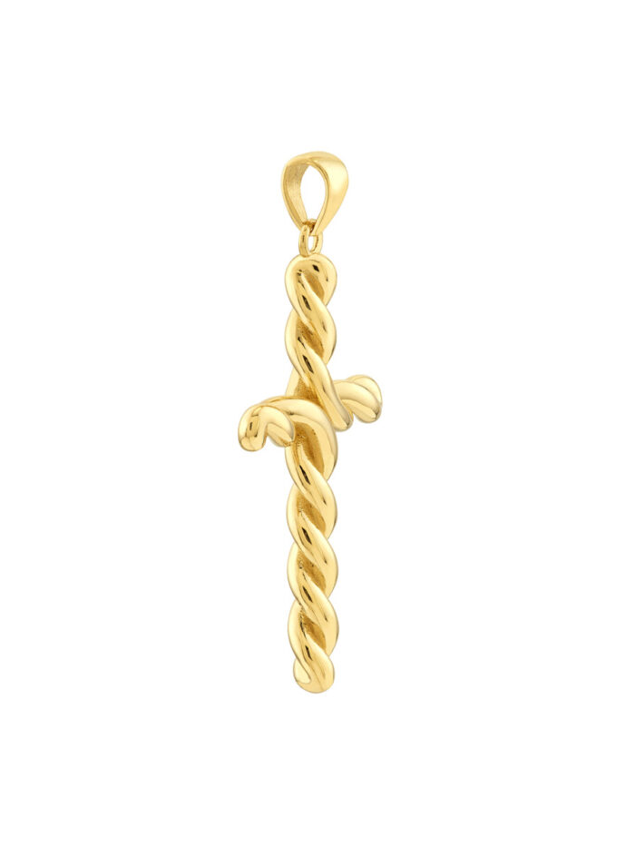 Make a grand statement with this striking Large Twist Cross pendant. Crafted from gleaming 14K Yellow Gold, the intricate twist design adds a touch of modern sophistication. This pendant is sure to draw attention and become a cherished piece in your jewelry collection.