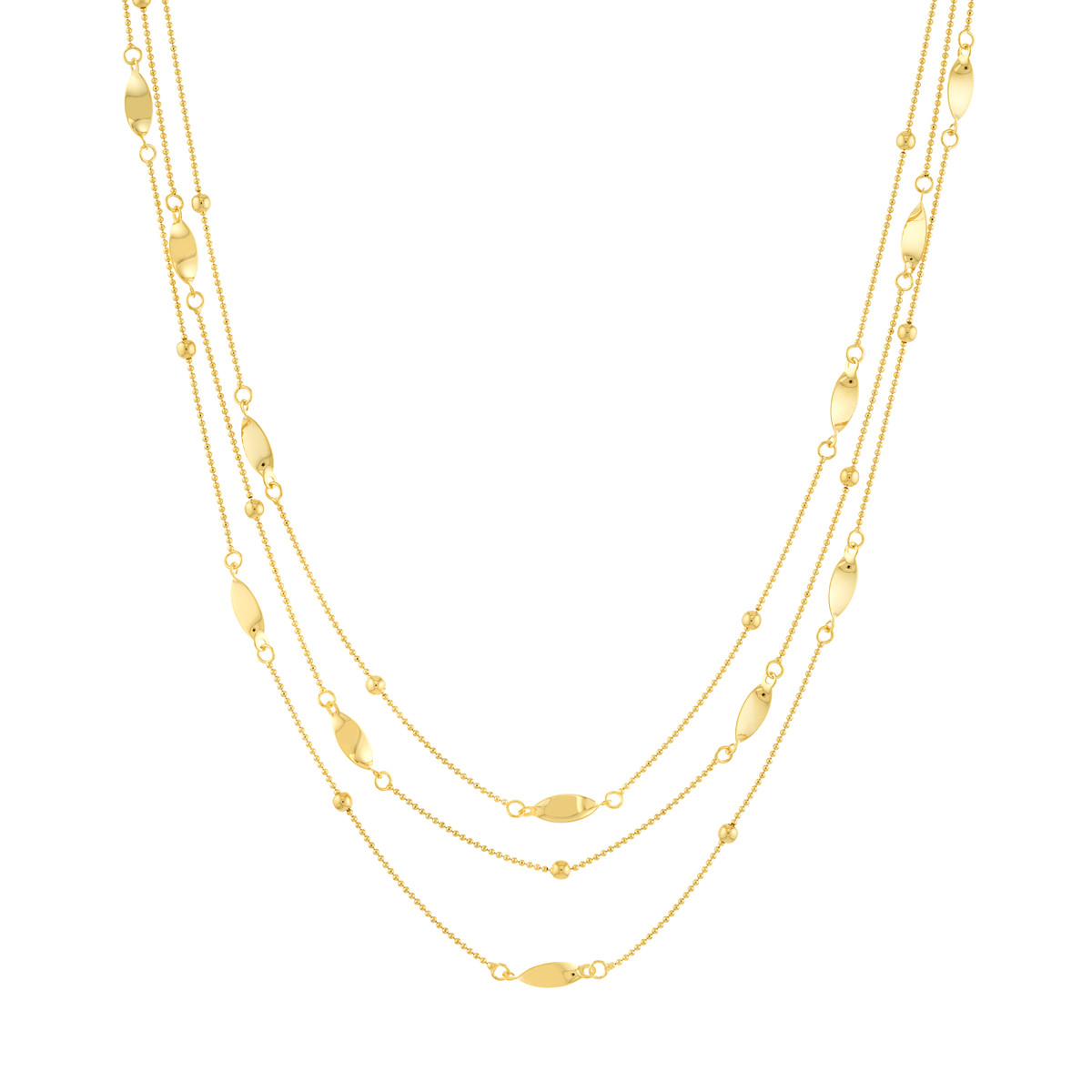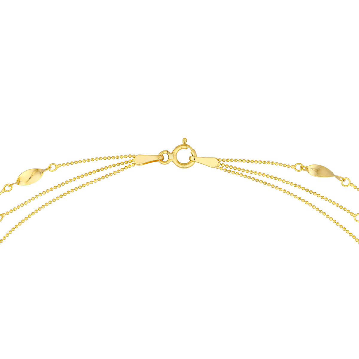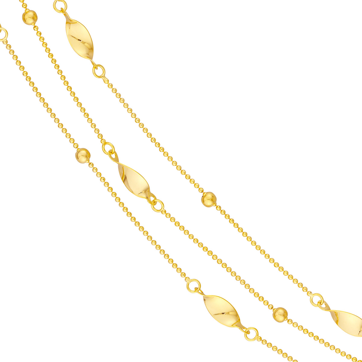 This stunning Layered Bead and Marquise Stations Necklace is a versatile piece that effortlessly elevates any ensemble. Crafted from lustrous 14K yellow gold, the necklace features a unique combination of delicately placed beads and twisted marquise stations, creating a captivating interplay of textures. The 17-inch link chain provides a comfortable fit, while the secure spring ring closure ensures peace of mind.