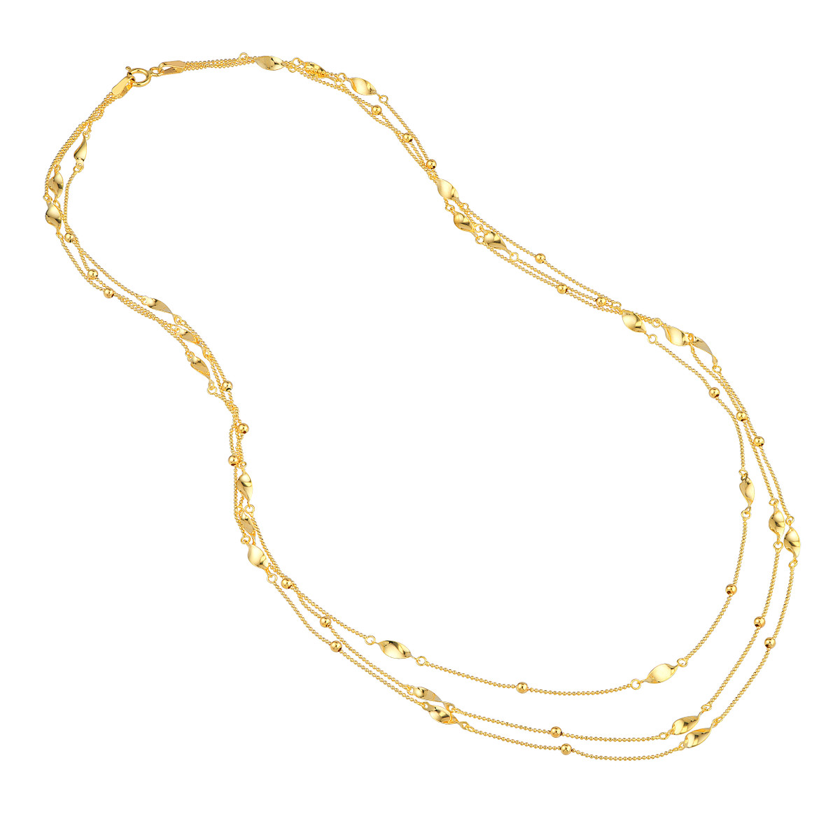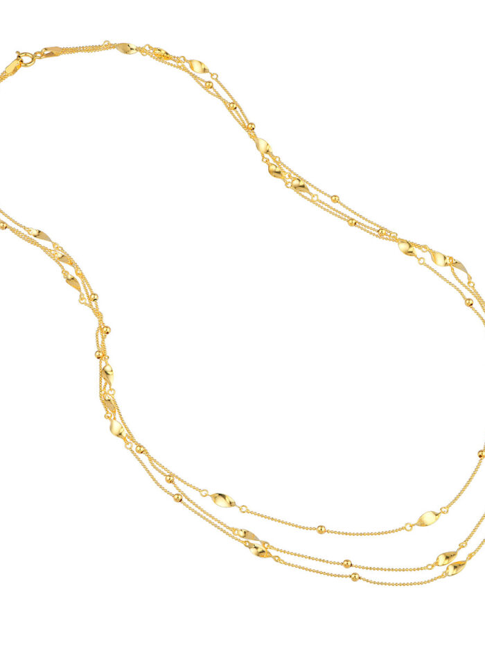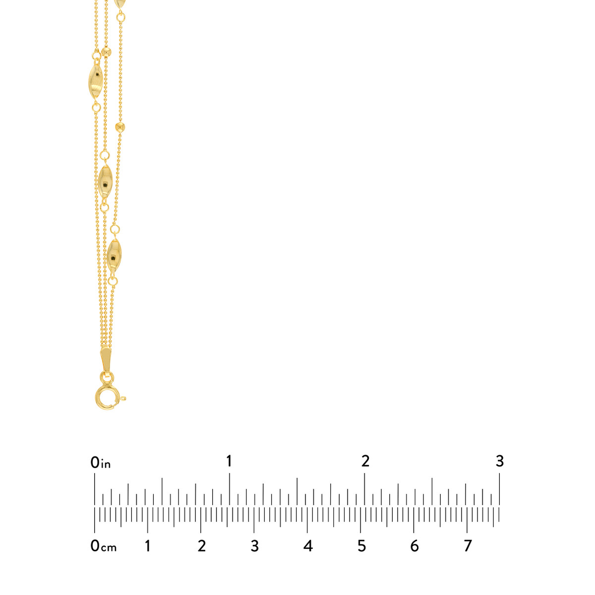 This stunning Layered Bead and Marquise Stations Necklace is a versatile piece that effortlessly elevates any ensemble. Crafted from lustrous 14K yellow gold, the necklace features a unique combination of delicately placed beads and twisted marquise stations, creating a captivating interplay of textures. The 17-inch link chain provides a comfortable fit, while the secure spring ring closure ensures peace of mind.