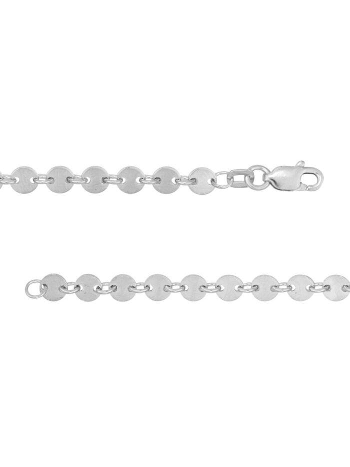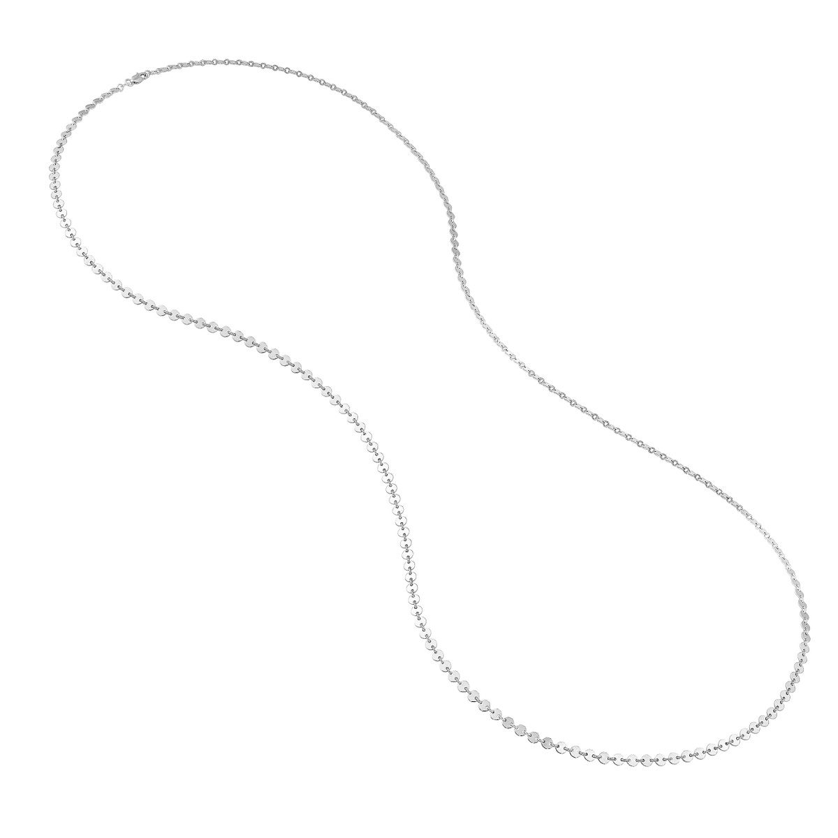 Channel timeless elegance with this stunning 36-inch long disc necklace. Crafted from sterling silver and plated in rhodium, yellow gold, or rose gold, this necklace features a classic design with beautifully polished discs along a durable mariner chain. Its substantial length makes a bold statement, perfect for adding a touch of sophistication to any ensemble.