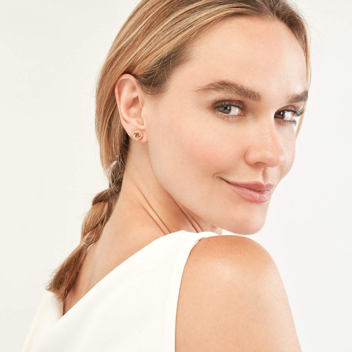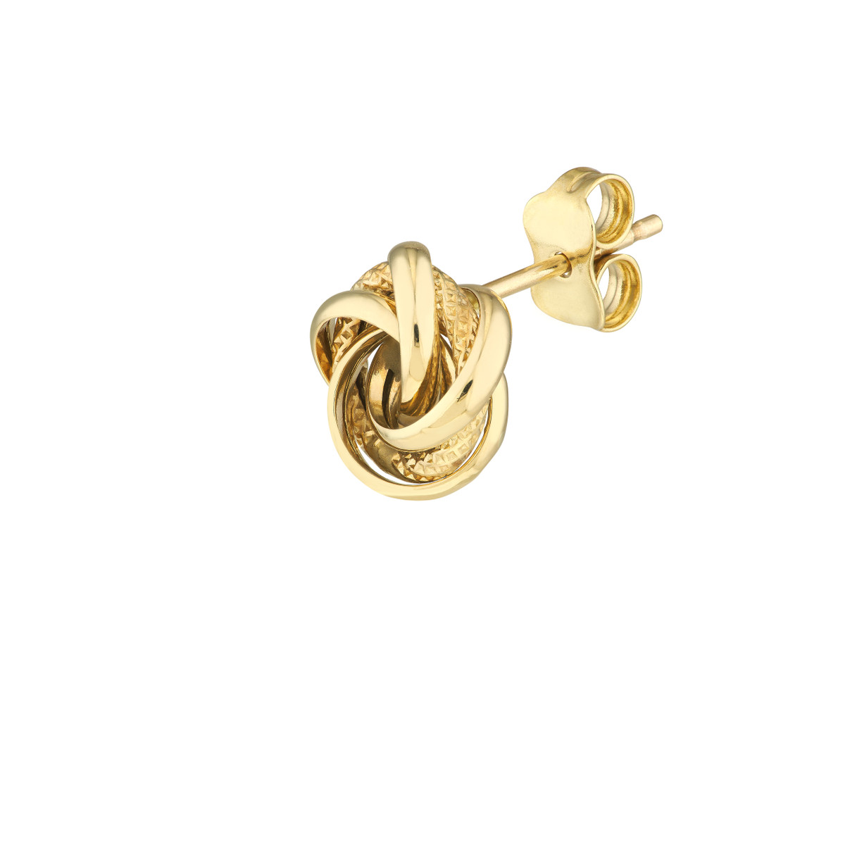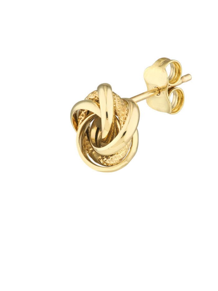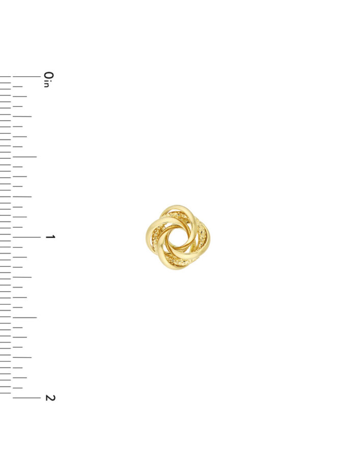 Celebrate love with the intricate detail of the Love Knot Stud Earrings. Crafted in 10K or 14K yellow gold, these earrings feature a textured love knot design, a timeless symbol of enduring affection. The delicate texture adds a touch of visual interest, while the classic stud style ensures a comfortable and versatile wear.