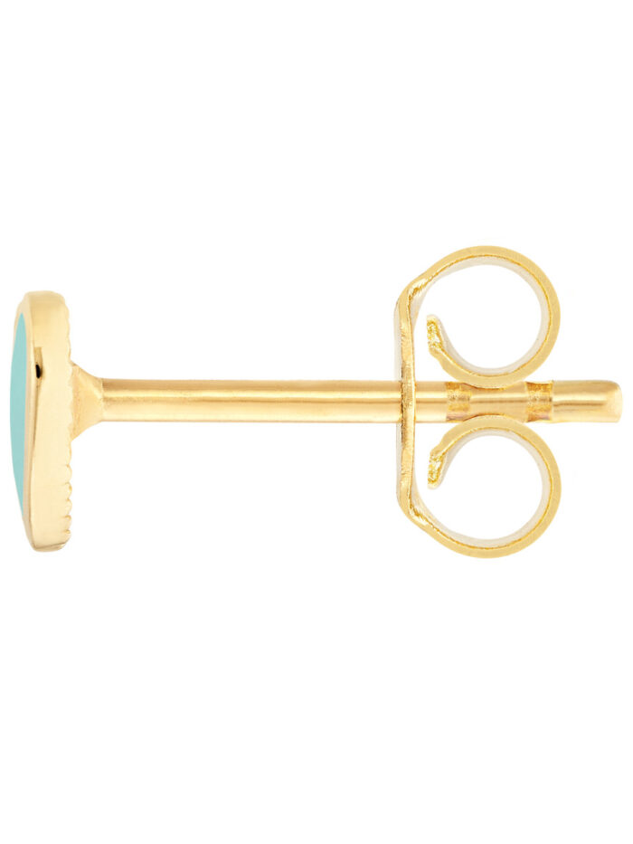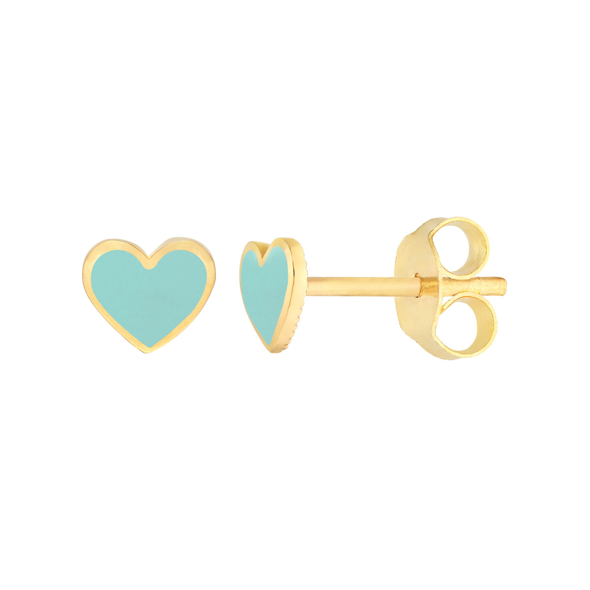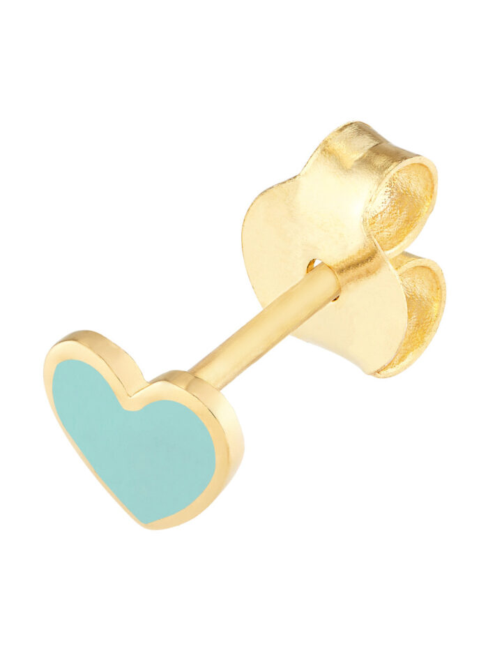 Embracing both love and style, these Lt.Turquoise Enamel Heart Stud Earrings are a delightful addition to your jewelry collection. Made from lustrous 14K yellow gold and featuring a beautiful turquoise enamel heart, these earrings are a perfect blend of elegance and charm. The secure post & nut closure ensures they stay comfortably in place.