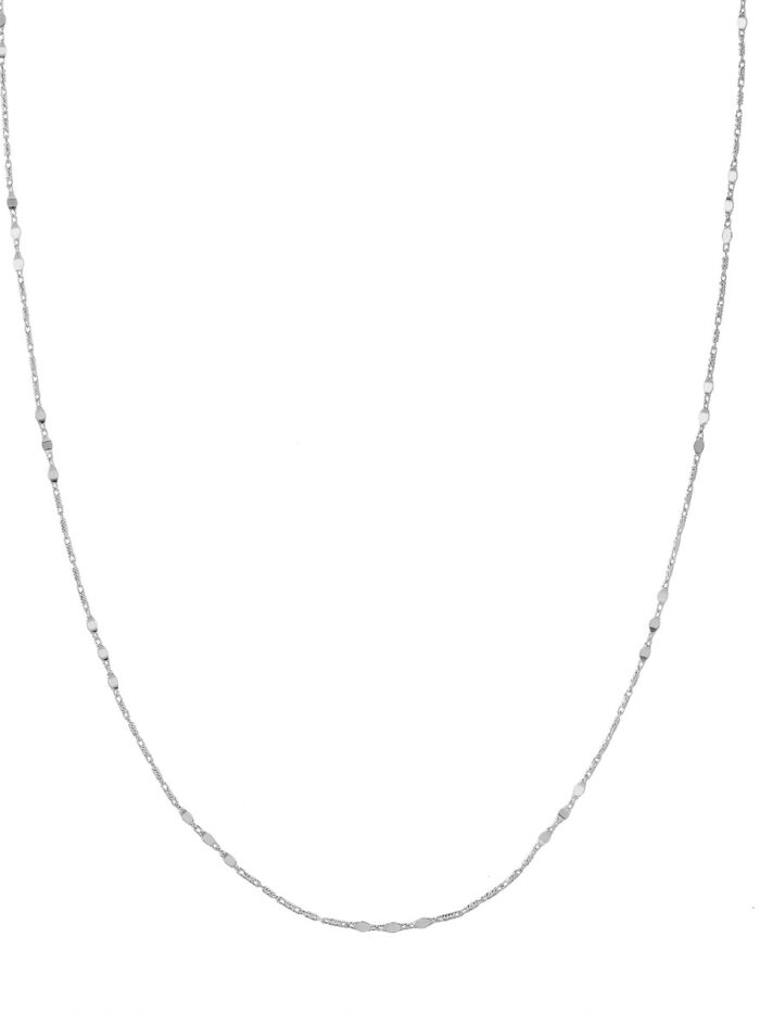 Make a statement with the unique Lumicina Chain featuring flat disc stations. This 14K White Gold chain boasts an eye-catching design with its distinctive flat disc accents. Crafted with a classic Byzantine chain style, it exudes both sophistication and modern flair. The 16-inch length makes it perfect for layering or wearing solo as a statement piece.