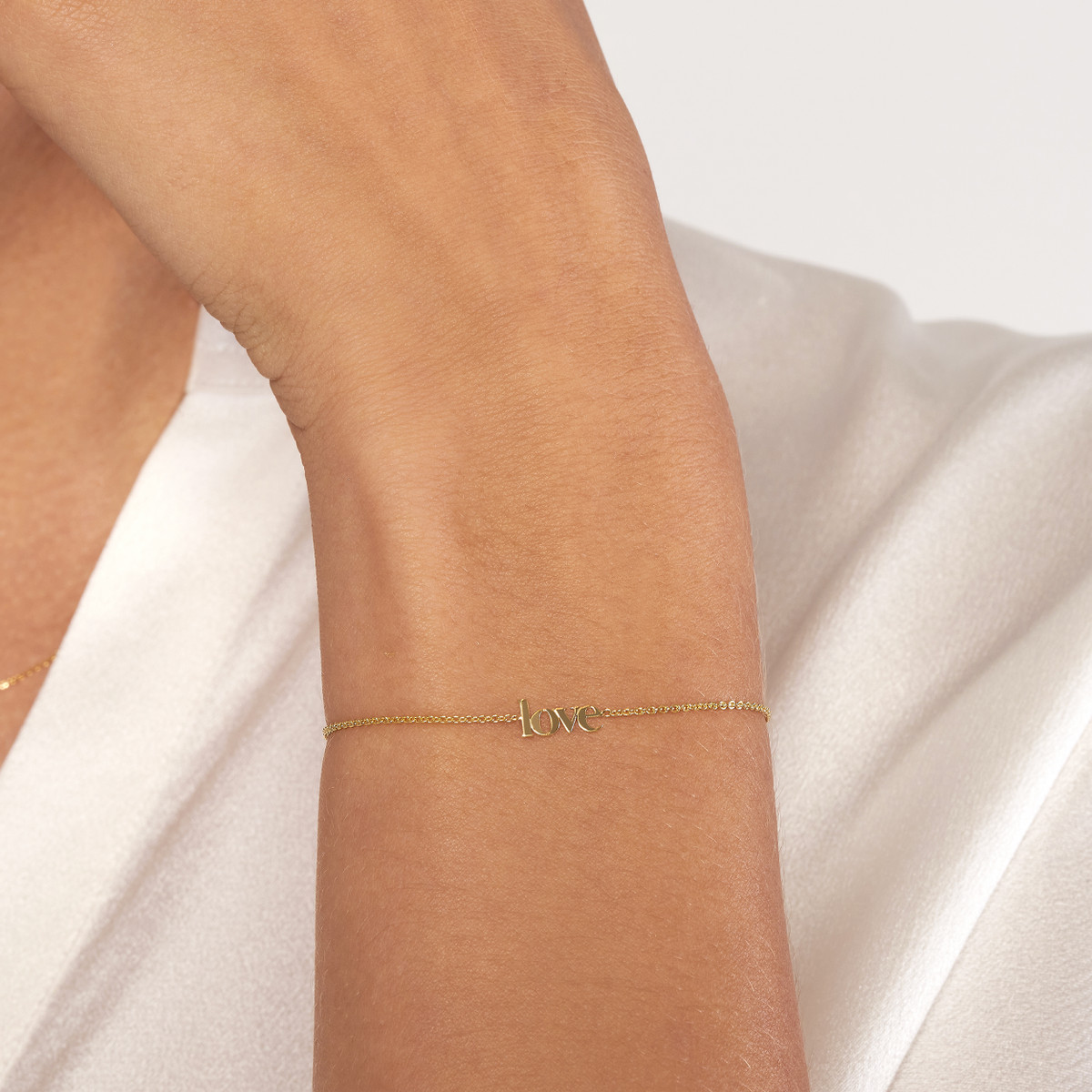 Add a touch of timeless elegance to your look with our Mini Love Bolo Bracelet. Crafted in 14K yellow gold, this delicate bracelet features a charming “love” inscription in a mini typewriter font. The adjustable design allows for a perfect fit, making it a versatile accessory for any occasion.