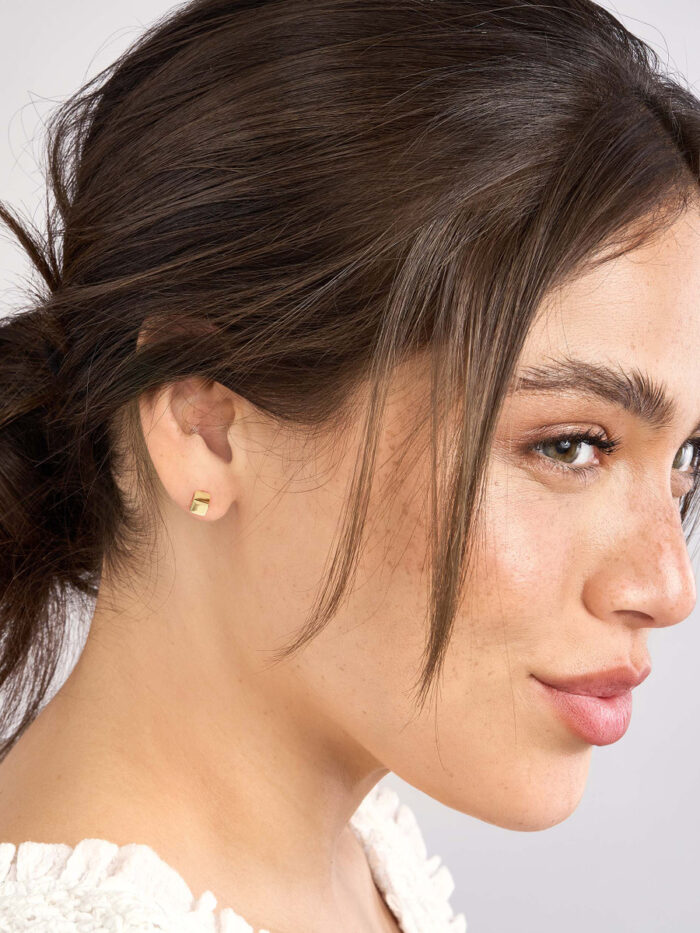 These dainty Mini Cube Stud Earrings are the perfect way to add a touch of understated elegance to your look. Crafted from lustrous 14K yellow gold, these studs feature a minimalist cube design that complements any style. Their small size makes them ideal for everyday wear or for adding a subtle touch of sparkle to a special occasion.