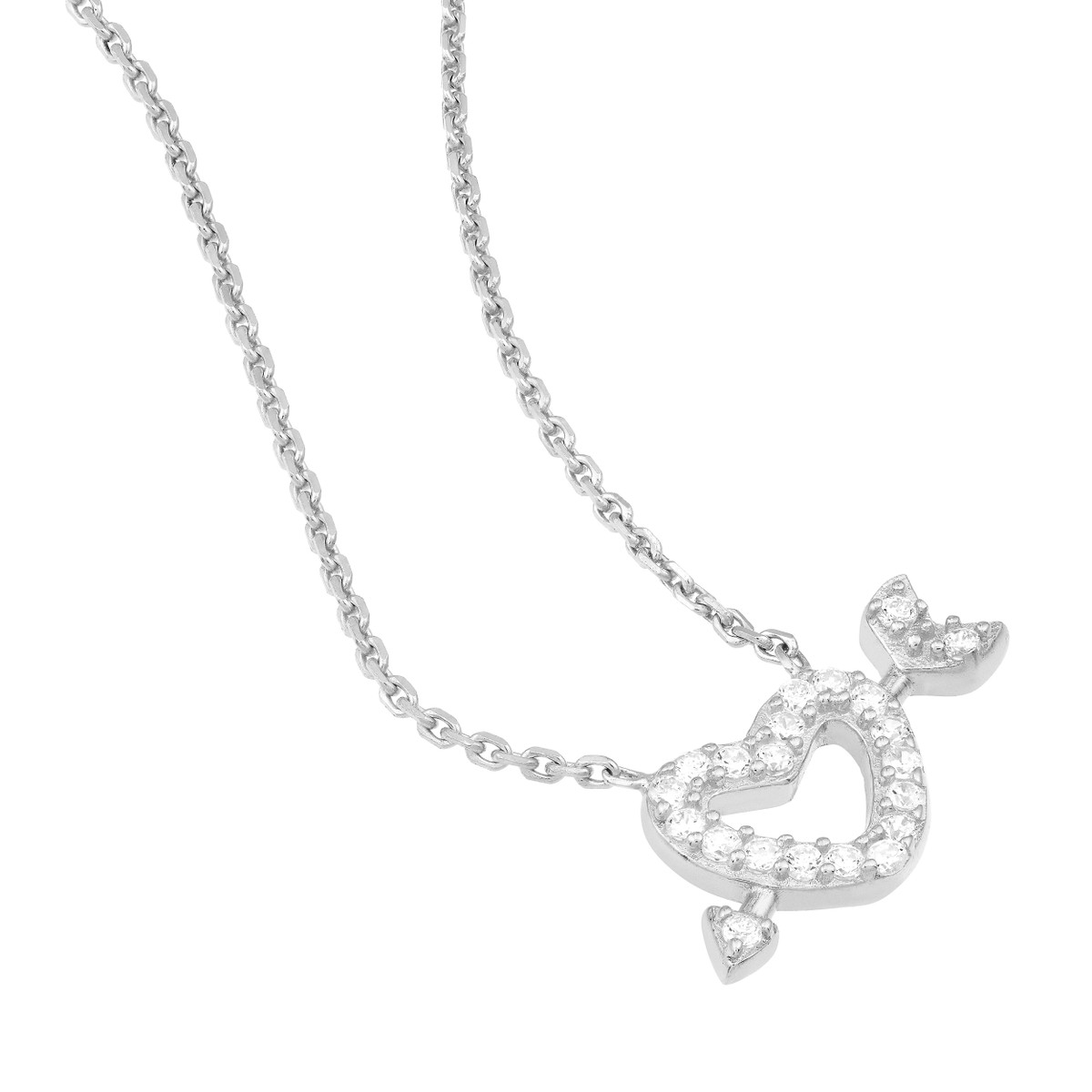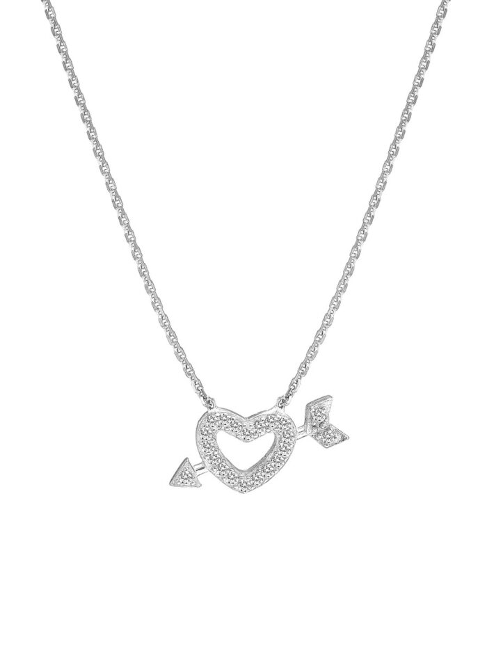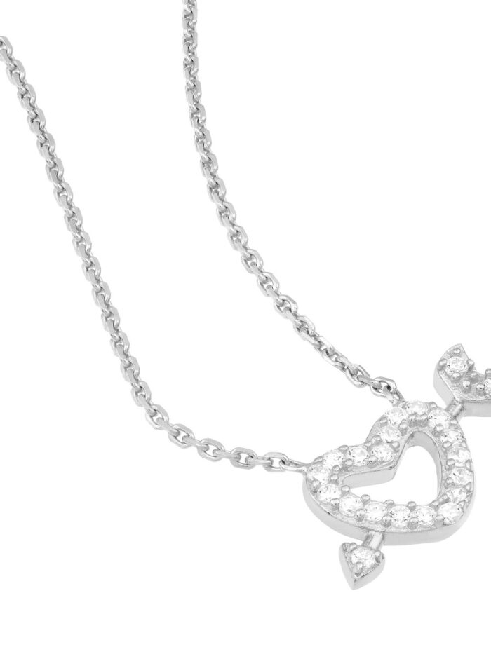 Celebrate the enduring power of love with our Mini CZ Heart and Arrow Adjustable Necklace. Featuring a delicate heart and Cupid’s arrow pendant adorned with shimmering CZ stones, this necklace is crafted from sterling silver and plated in rhodium, yellow gold, or rose gold. The adjustable cable chain allows for a personalized fit, making it a perfect choice for layering or wearing on its own.