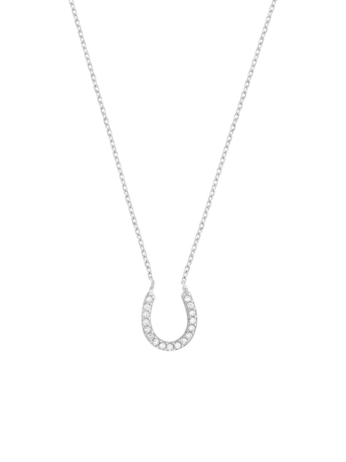 Carry a symbol of good luck and protection with this charming 14K White Gold Mini CZ Horseshoe Necklace. The tiny horseshoe pendant, adorned with a sparkling CZ accent, adds a touch of whimsy and good fortune to your look. The adjustable cable chain allows for a personalized fit, making it a versatile accessory for everyday wear.