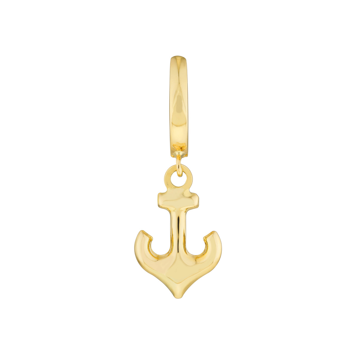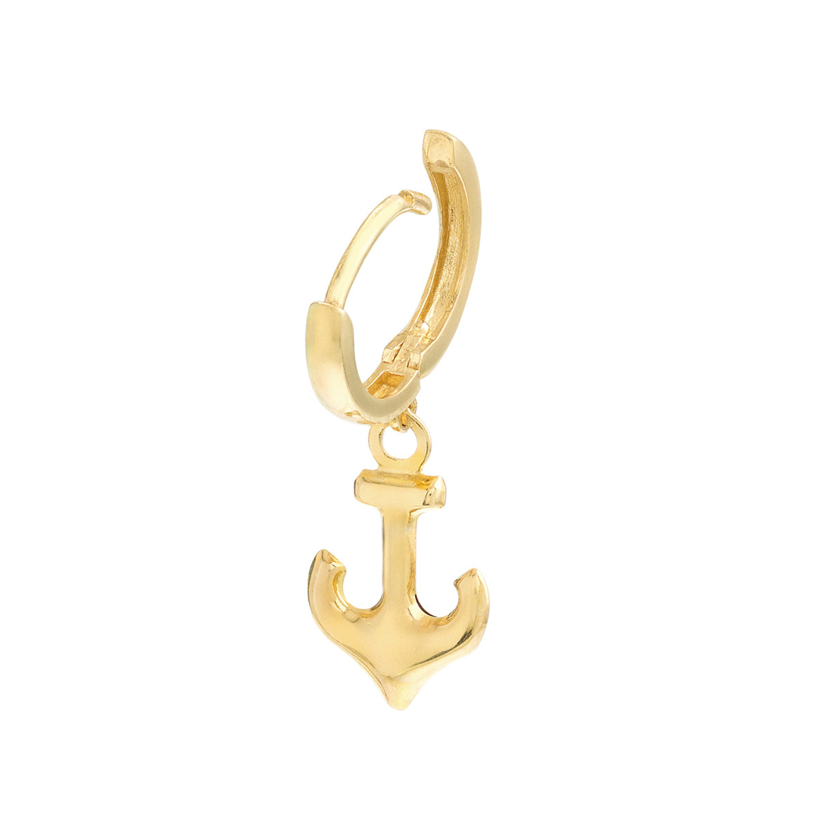 These lightweight mini huggie hoop earrings are a perfect blend of style and comfort. Crafted from lustrous 14K yellow gold, they feature a 10mm baby hoop accented by a dangling anchor charm. The secure snap-lock clasp ensures a comfortable and confident wear. Add a touch of nautical charm to your everyday look with these eye-catching earrings.