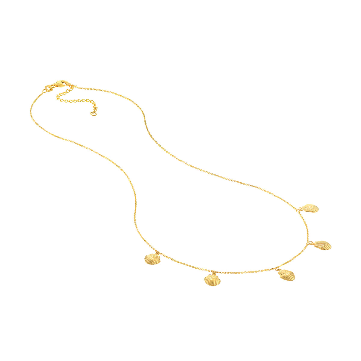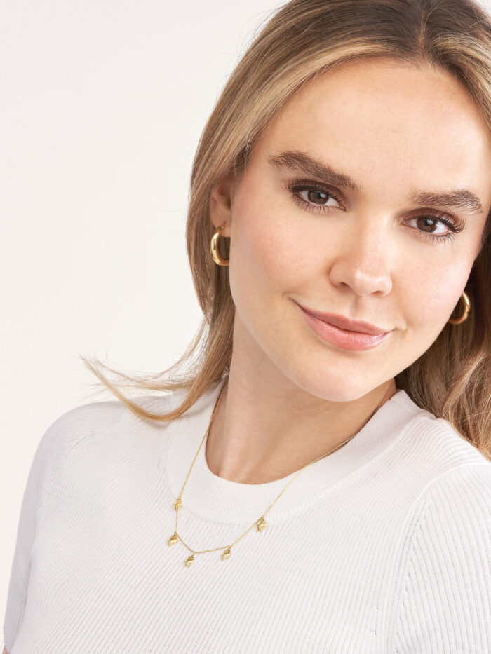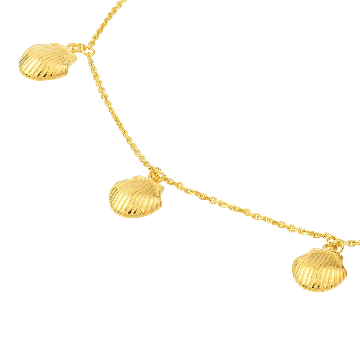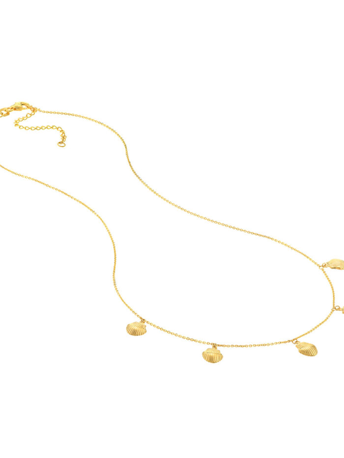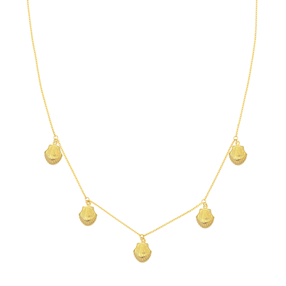 Bring a touch of the ocean’s beauty to your everyday style with the enchanting Mini Shells Dangle Necklace. This delicate necklace features five tiny seashells that sway gracefully, creating a mesmerizing movement. Crafted from 14K yellow gold, this piece is both elegant and enduring. The adjustable 16 to 18 inch cable chain and secure pear shape lobster clasp ensure a comfortable and personalized fit.