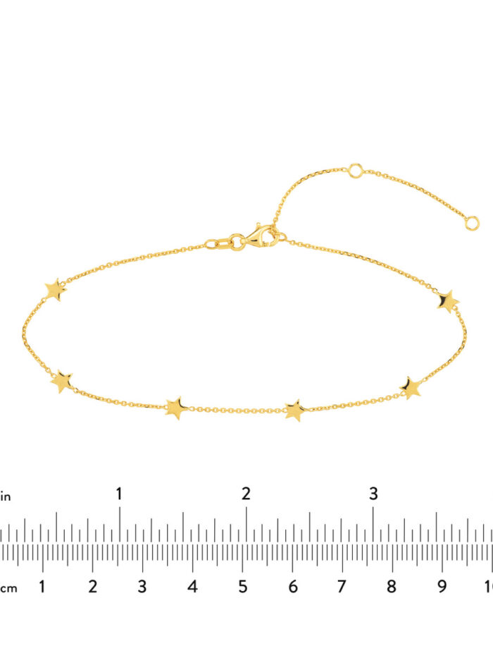 Mini Star Station Anklet – 14K Yellow Gold – Adjustable 9 to 10 Inches – by Dazyle