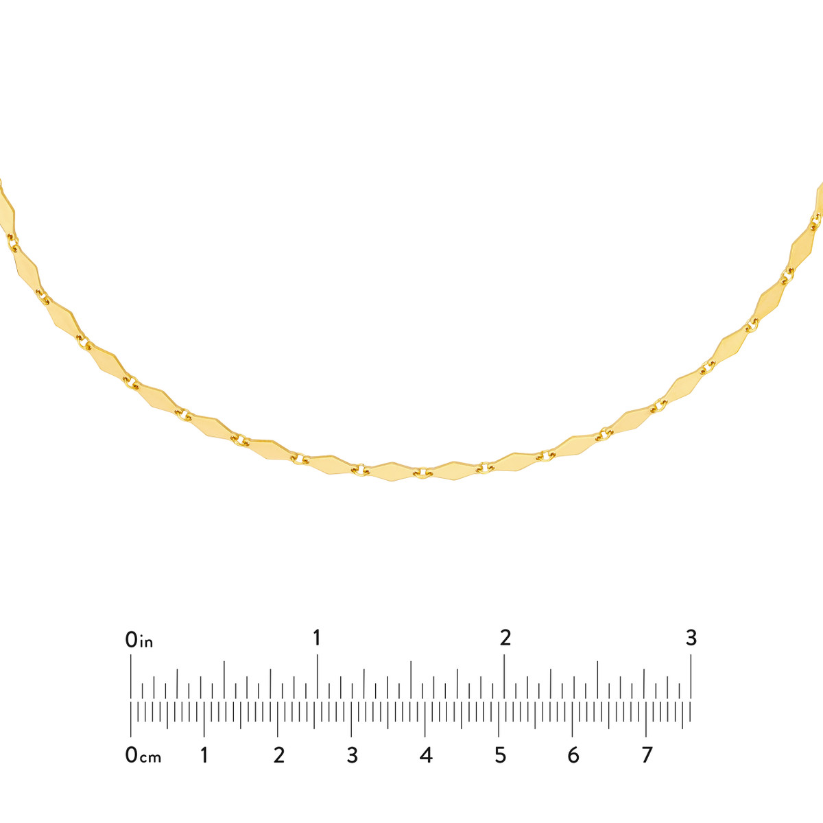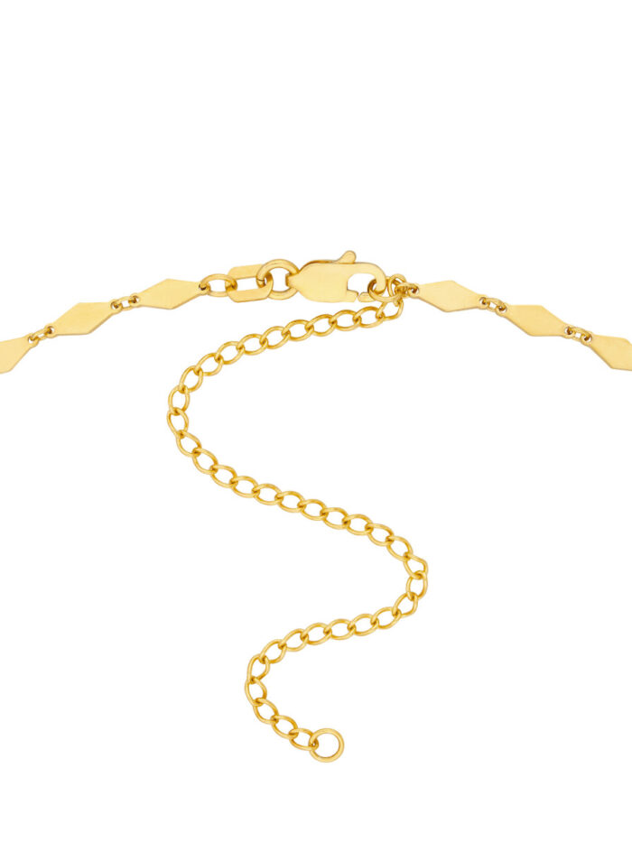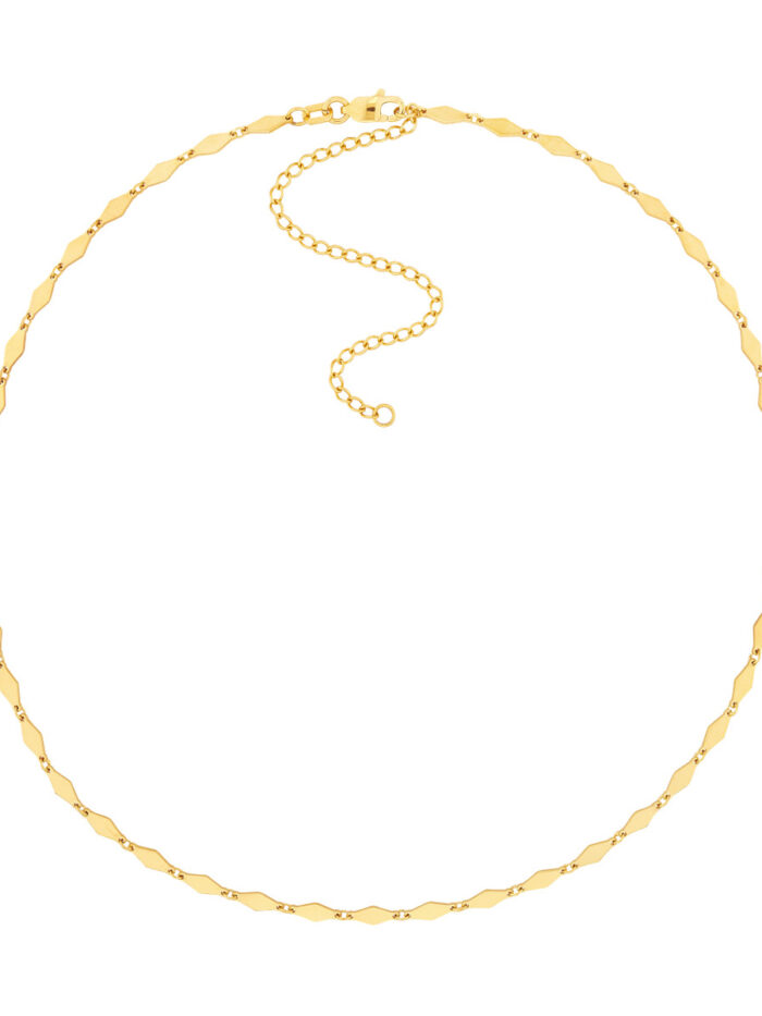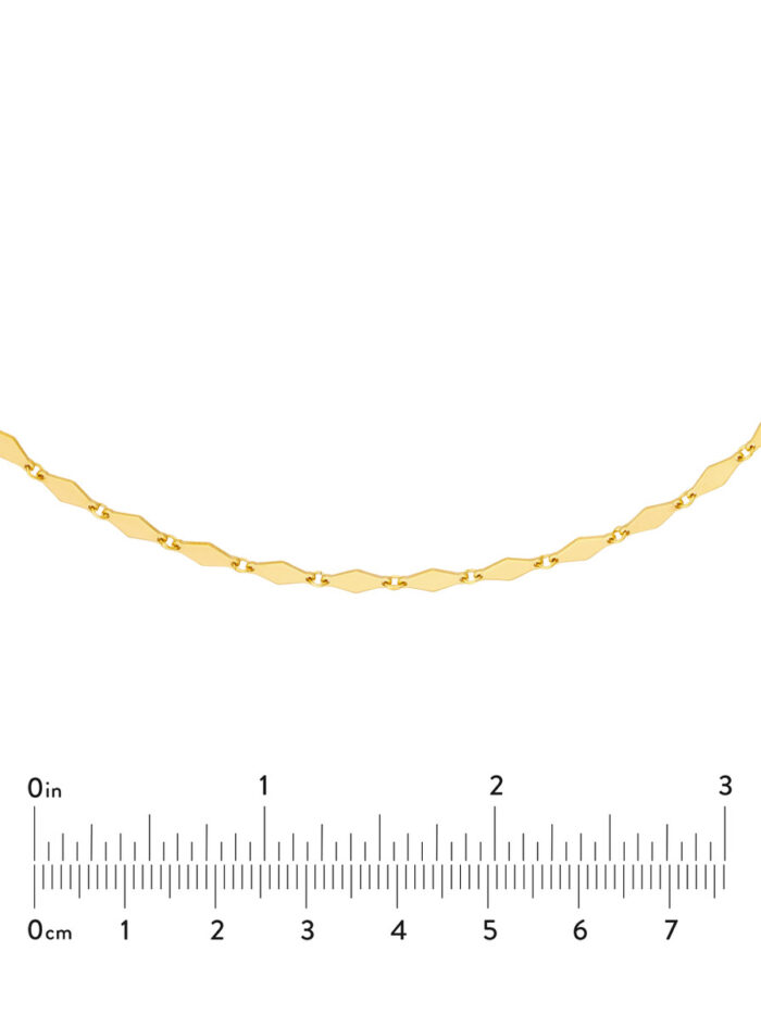 Make a statement with the dazzling Mirror Diamond Shape Link Choker Necklace. Crafted in luxurious 14K yellow gold, this choker features a unique design with mirror-like diamond-shaped links. The adjustable 3-inch extender ensures a perfect fit. Securely fastened with a lobster clasp, this choker adds a touch of elegance and sophistication to any outfit.
